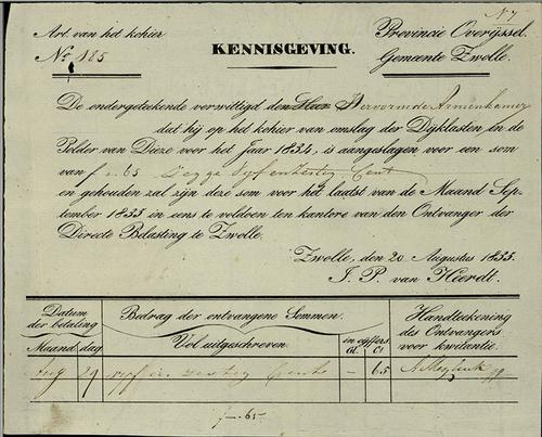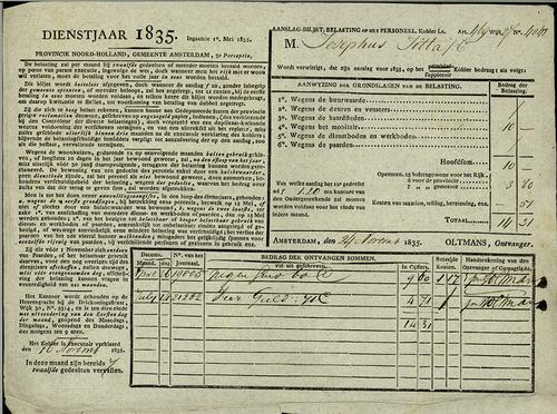 Aanslagbiljet, personele belasting, 1835