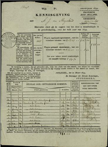 Aanslagbiljet, grondbelasting, 1835