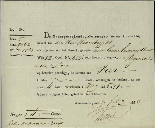 Kwitantie, precariorechten, 1836