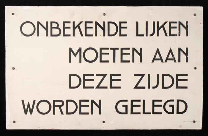 Wit tekstbord met in zwarte letters "Onbekende lijke...