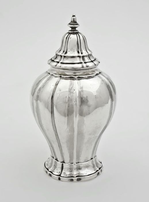 Zilveren theebus met deksel