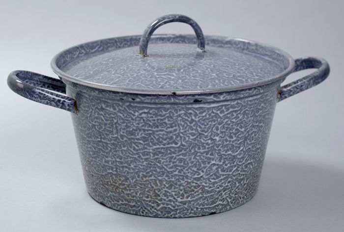 Grote grijs gewolkte soeppan met losse deksel