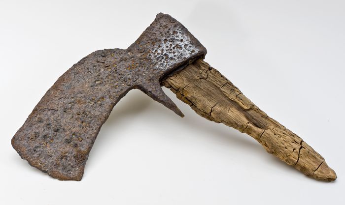 Bijl met brede rug en gebogen blad, houtbewerkingsbijl