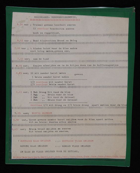 Tijdtabel voor de broodkamer van het Bergwegziekenhuis
