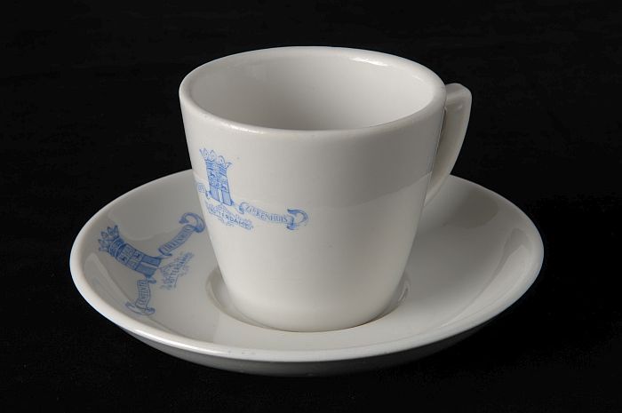Witte kop en schotel met blauw logo Gemeente Ziekenh...