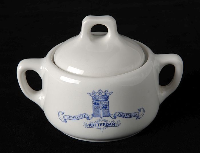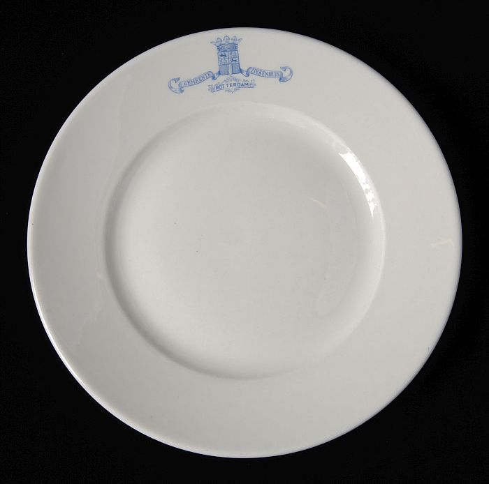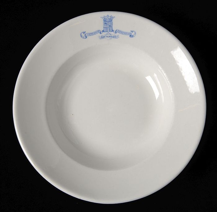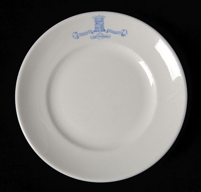 Wit ontbijtbord met blauw logo Gemeente Ziekenhuis R...