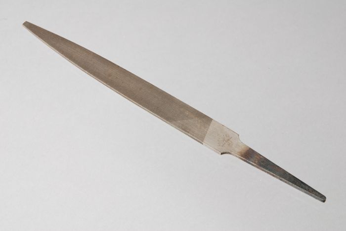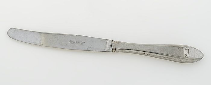 Zilverkleurig mes Bergwegziekenhuis, met opschrift "...