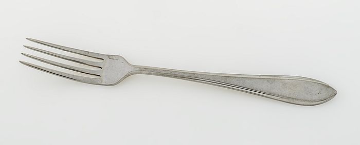 Zilverkleurige vork Bergwegziekenhuis, met opschrift...