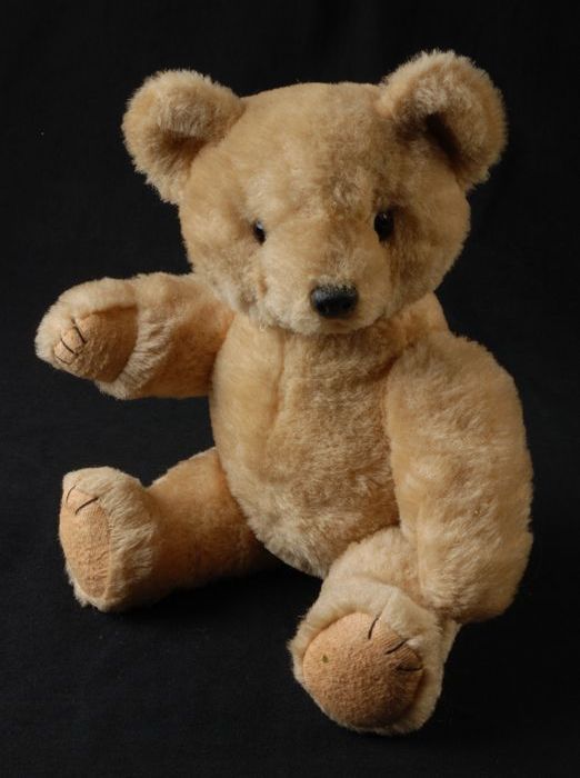 Teddybeer van nylonbont met flanellen voetzooltjes, ...