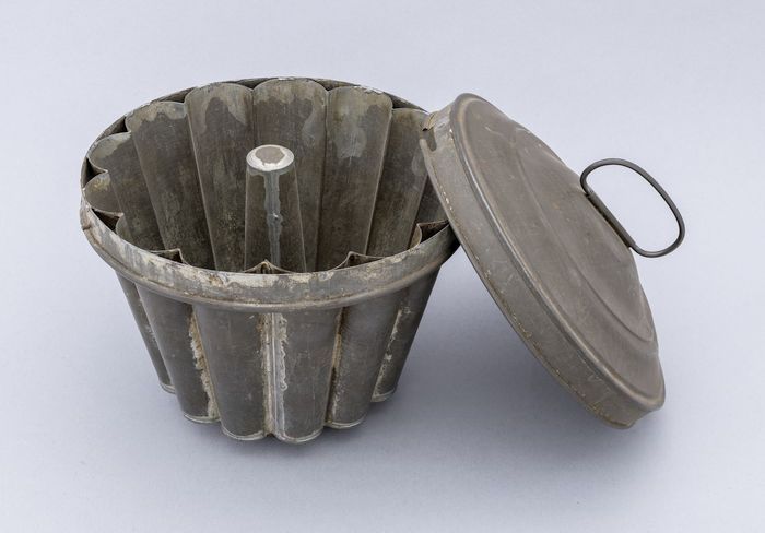 Grote blikken gelei- of puddingvorm uit twee delen, ...