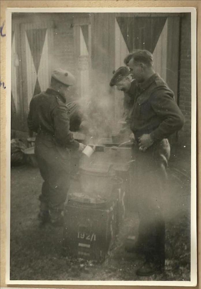 soldaten bij veldkeuken bij bevrijding Malden, septe...