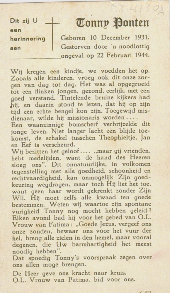 bidprentje Tonny Ponten