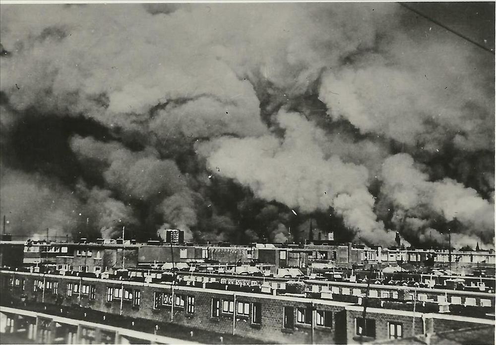Rotterdam, 14 mei 1940; rijtjeshuizen; grijze rookwo...
