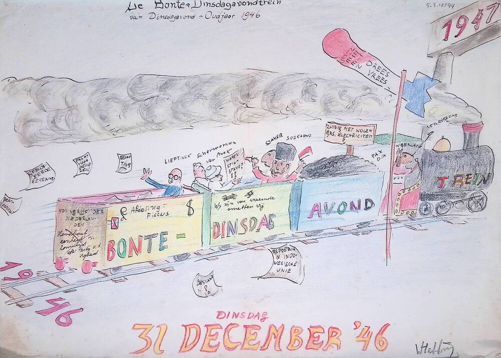 half affiche pro-Indonesië, woorden en tekening in h...