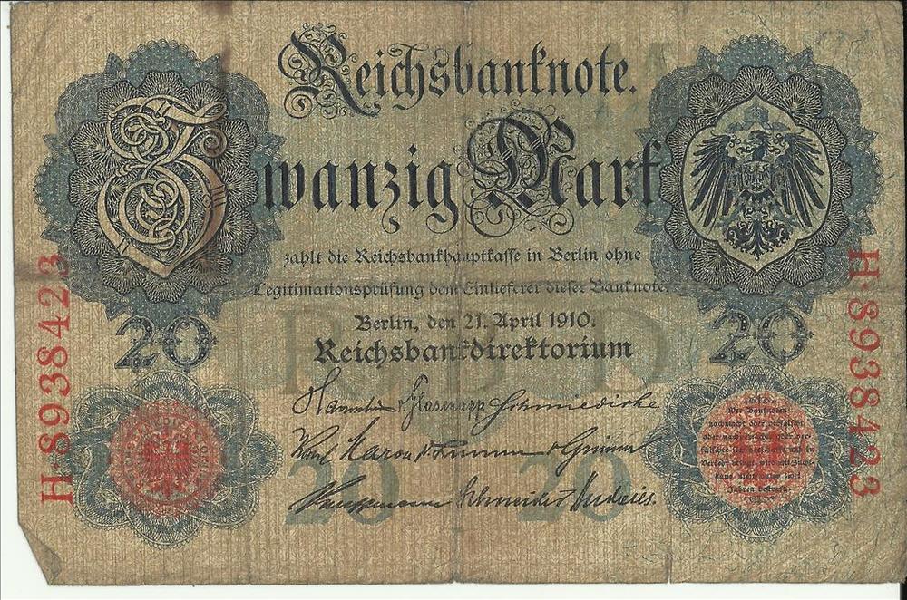 Bankbiljetten 20 Mark Reichsbanknote