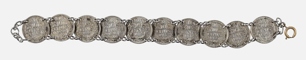 armband, gemaakt van dubbeltjes ( 10 cent ) met de a...