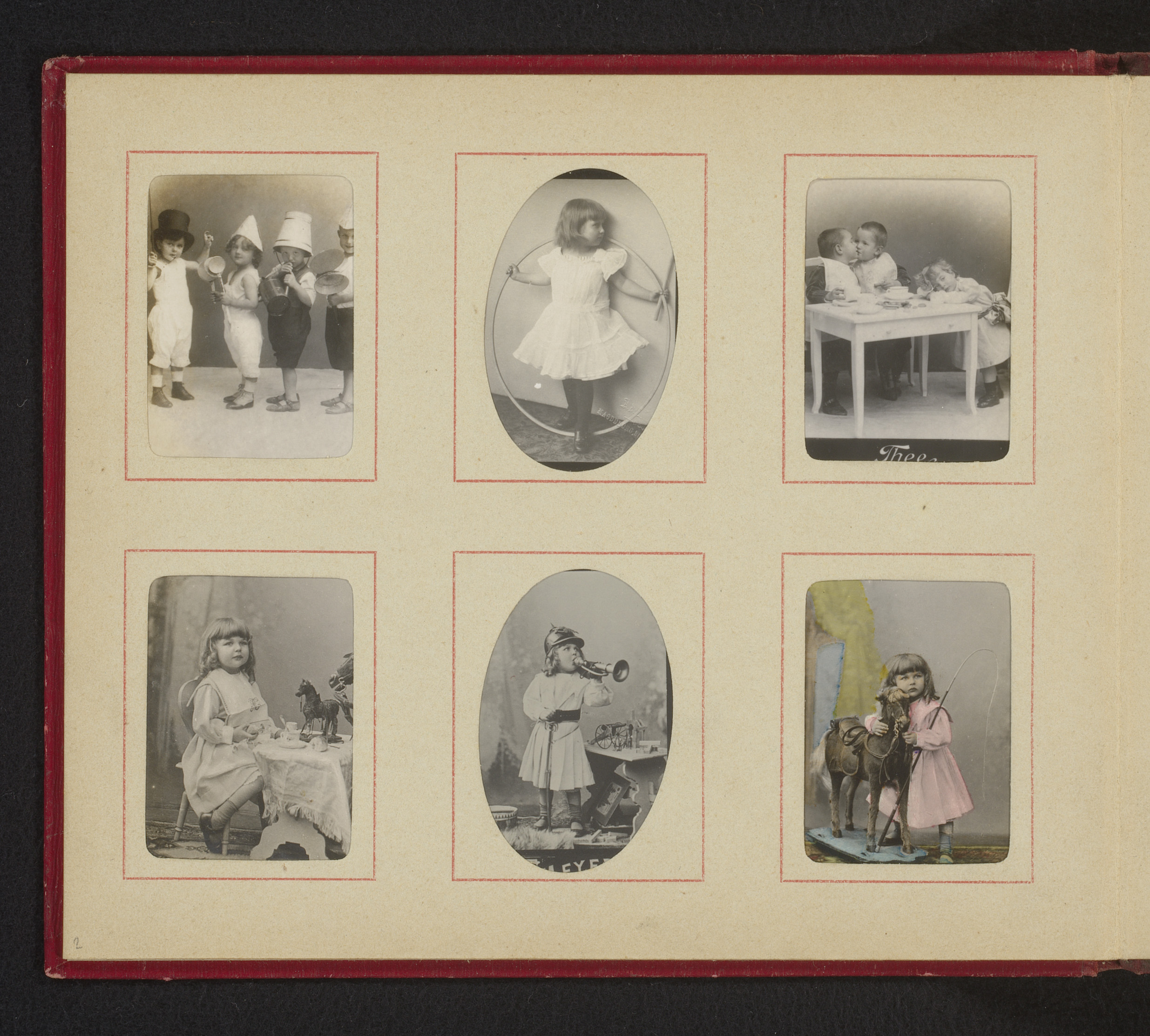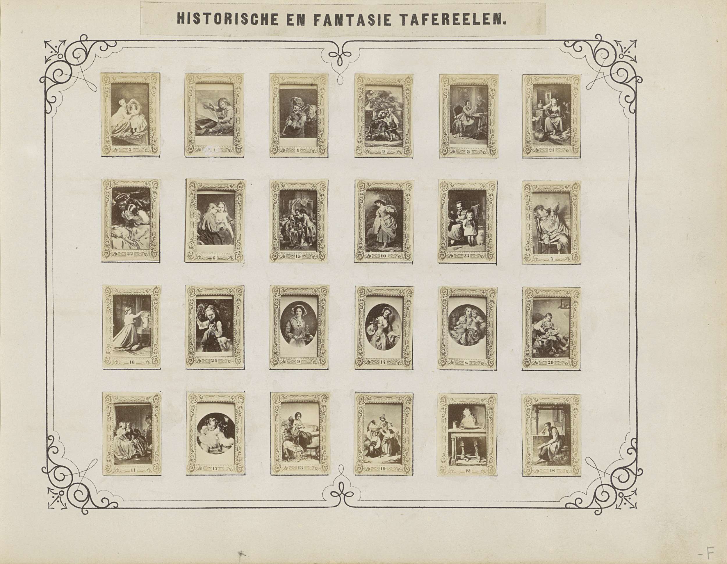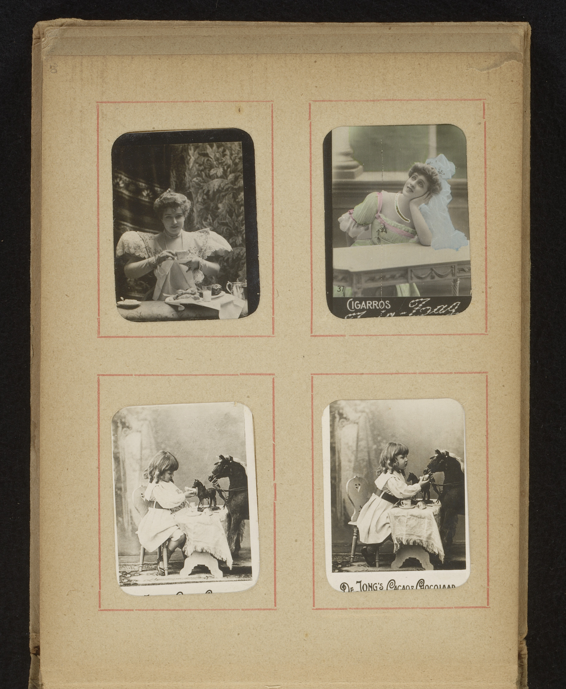 Twee albumbladen met namen en afbeeldingen van histo...