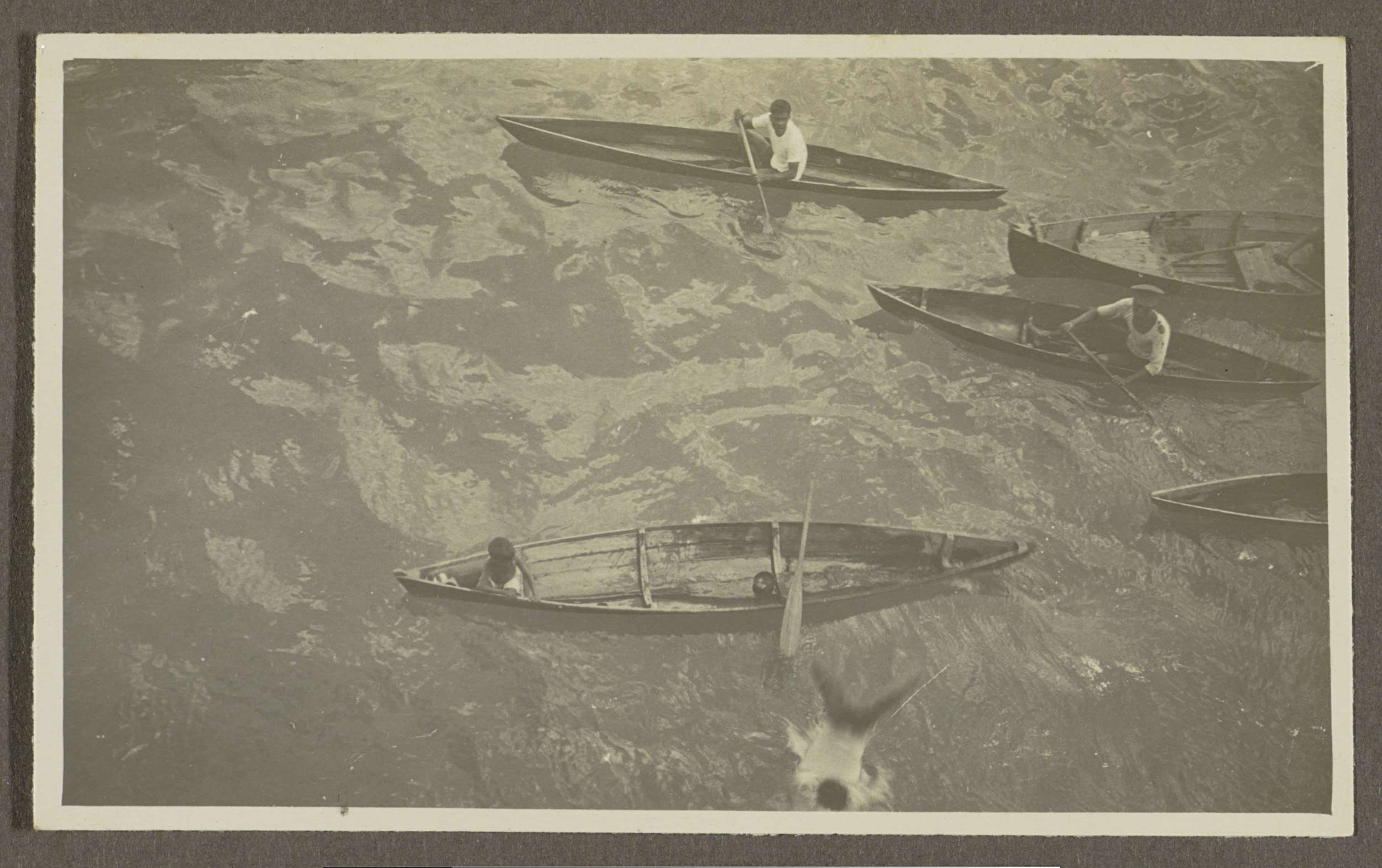 Jongens in houten boten