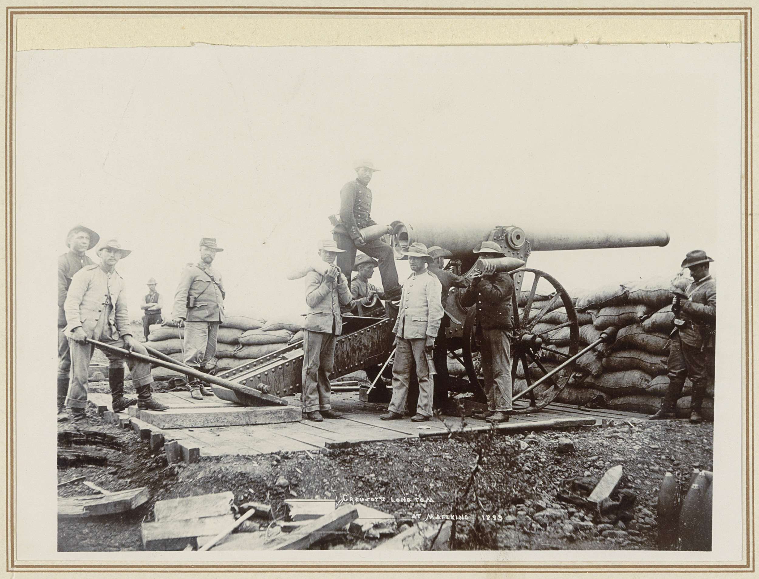 Mannen bij veldgeschut tijdens de belegering van Maf...