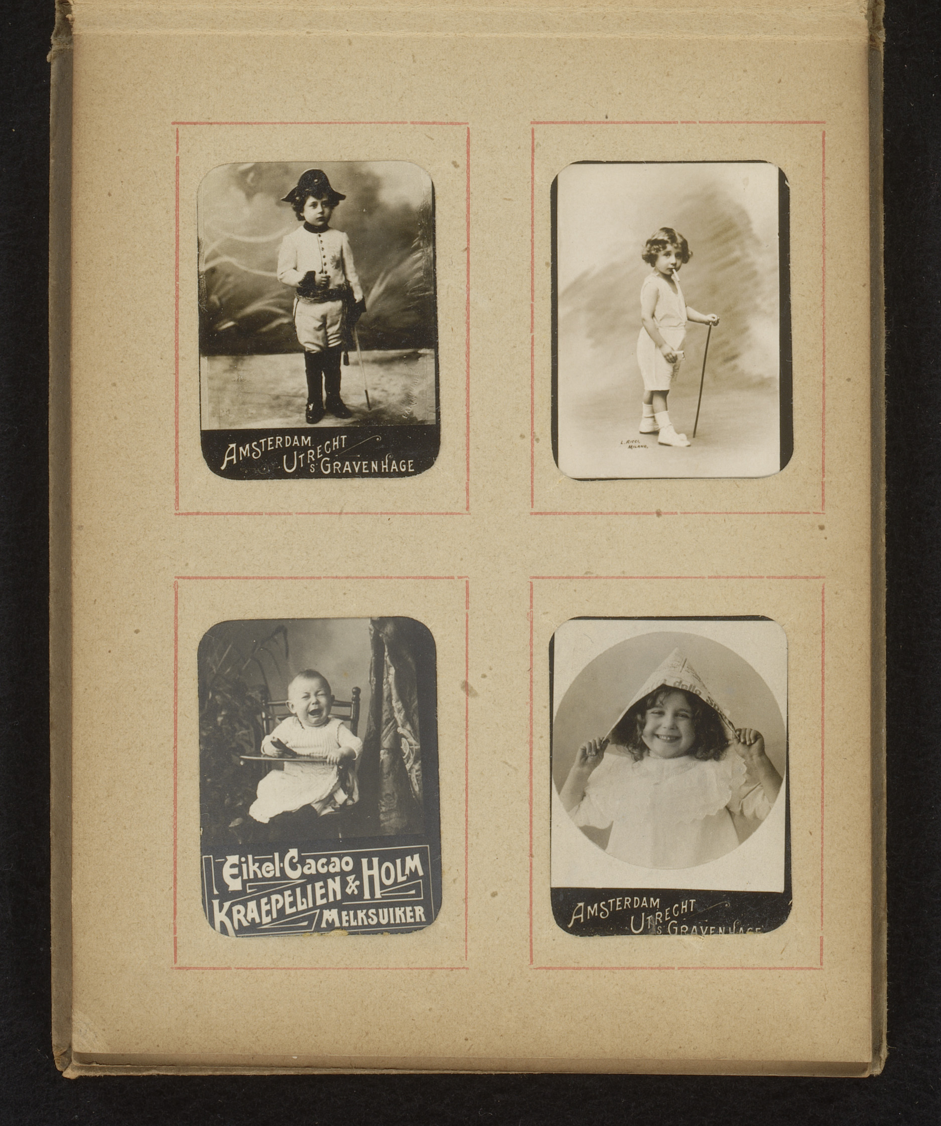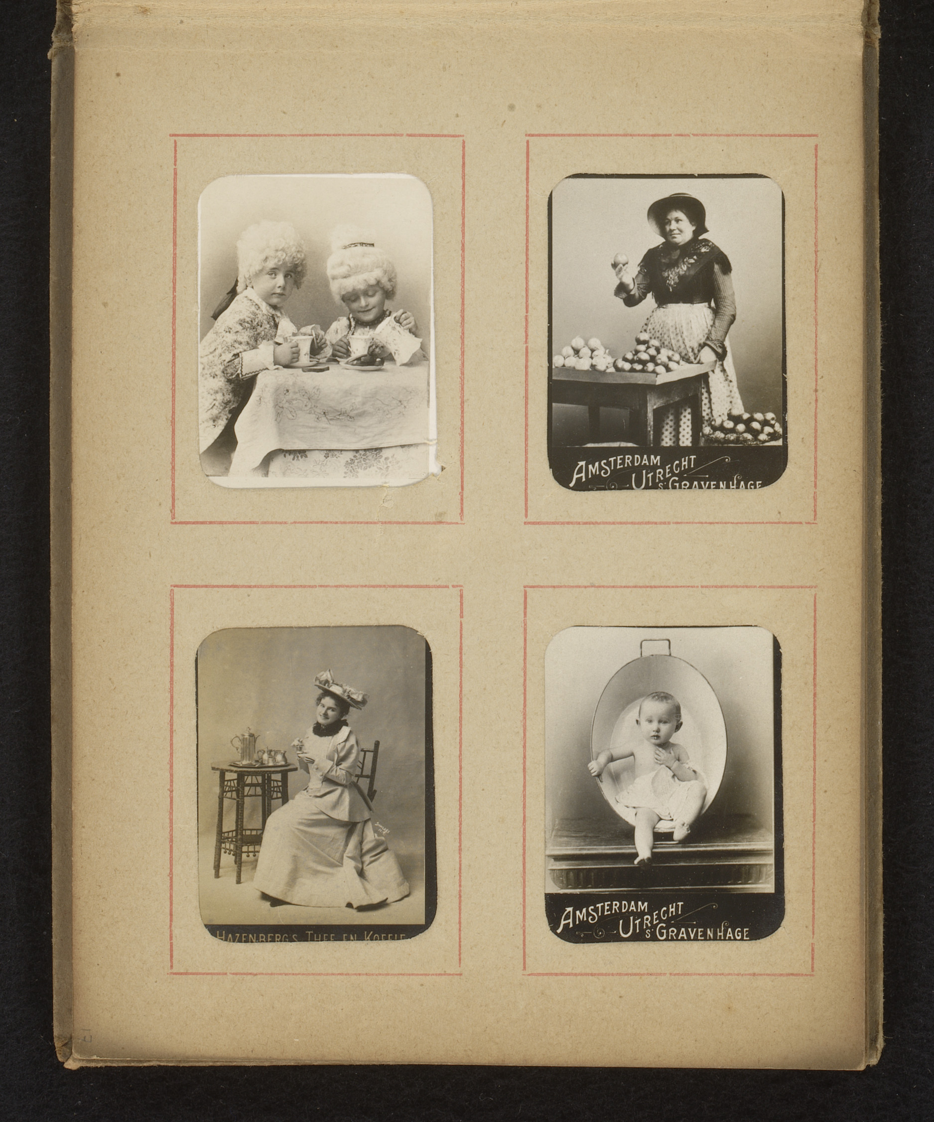 Twee albumbladen met namen en afbeeldingen van Neder...