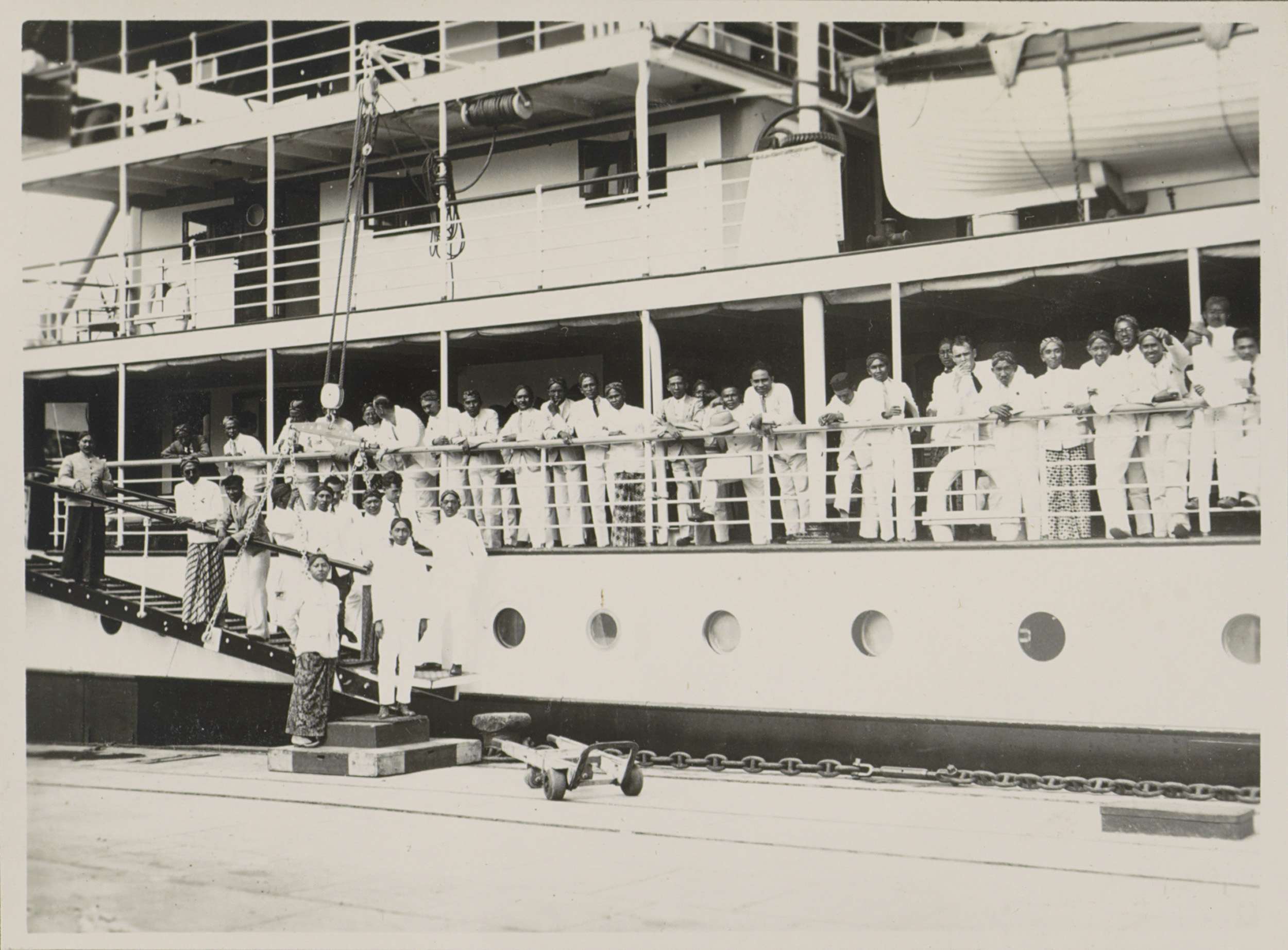 Mannen poserend aan boord van het schip Van Outhoorn