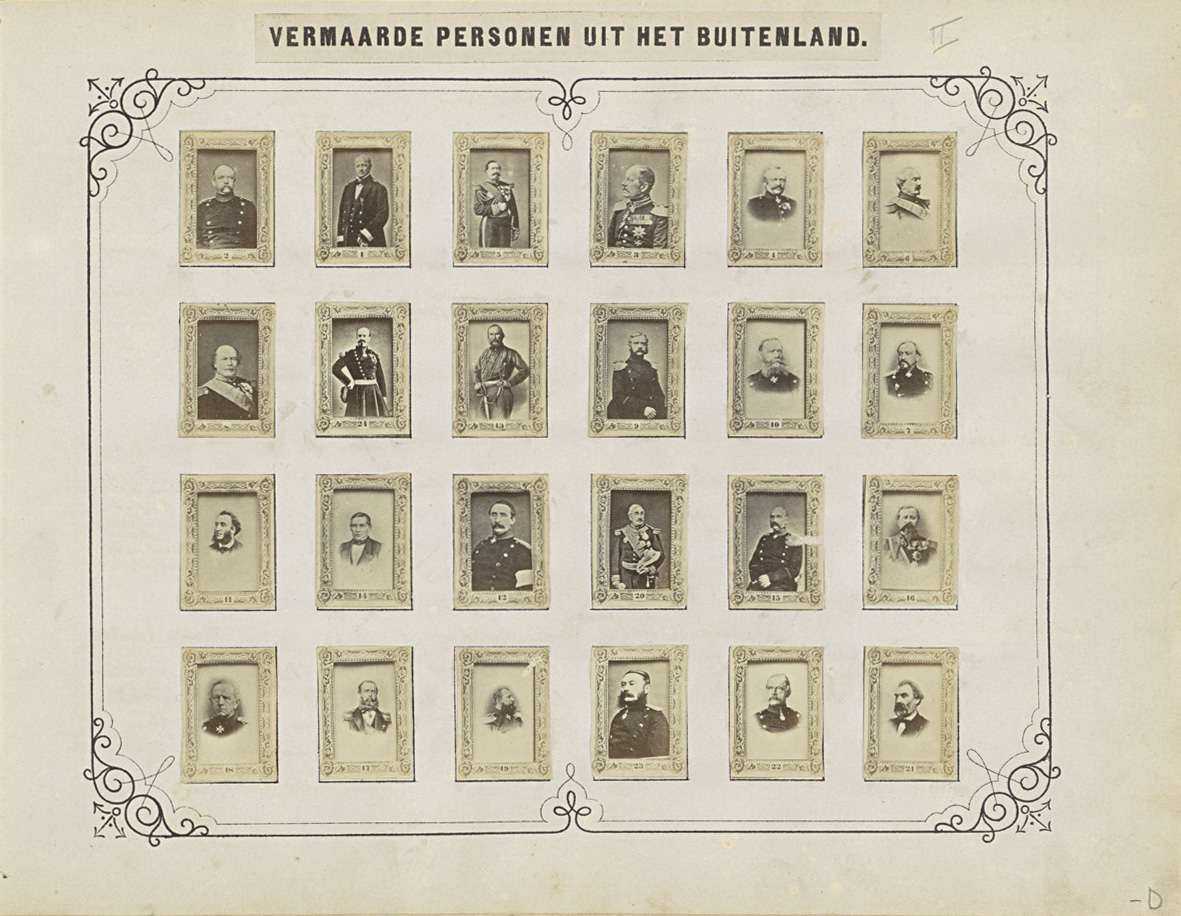 Twee albumbladen met namen en afbeeldingen van milit...