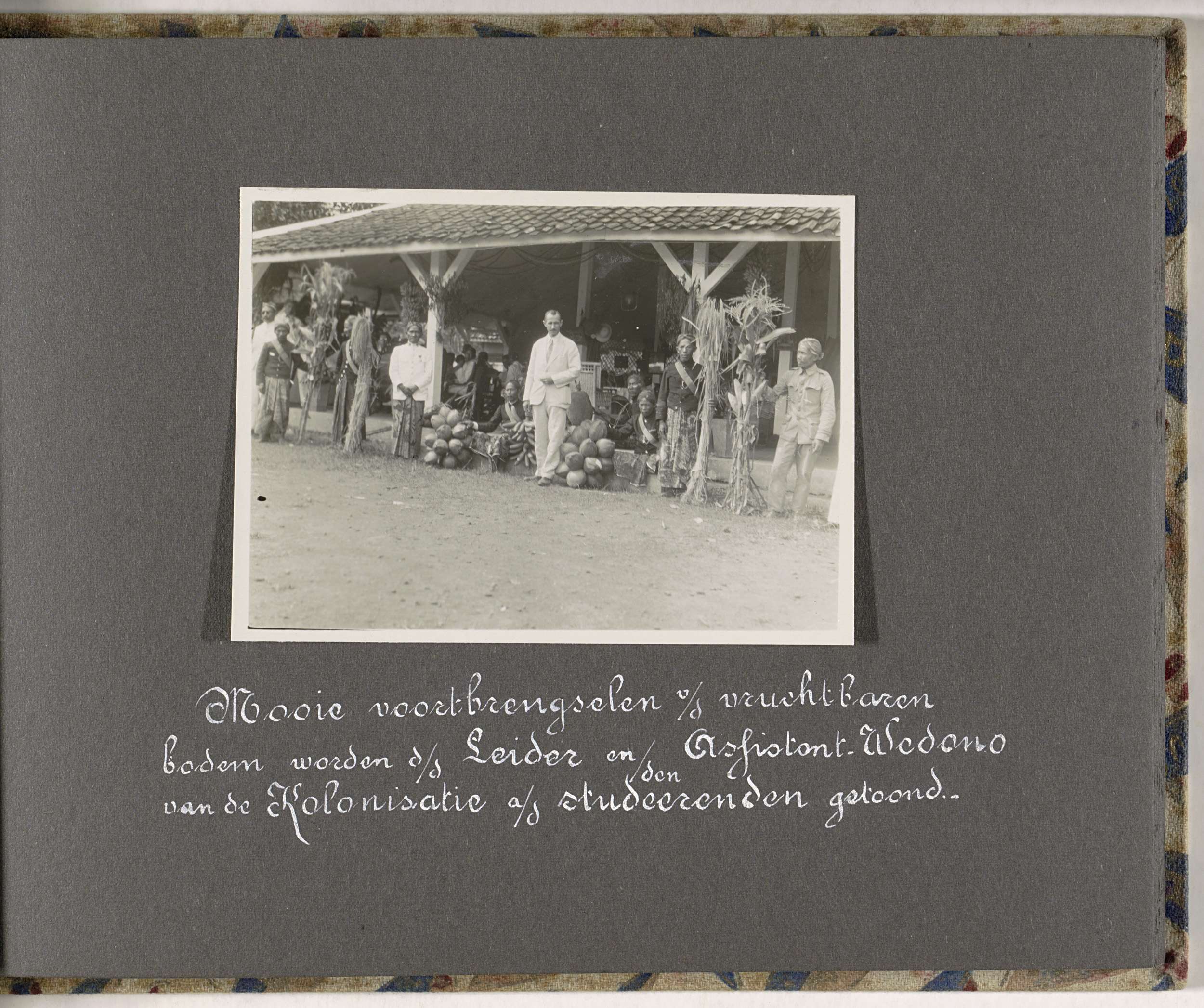Mannen poserend met landbouwproducten bij een pendop...