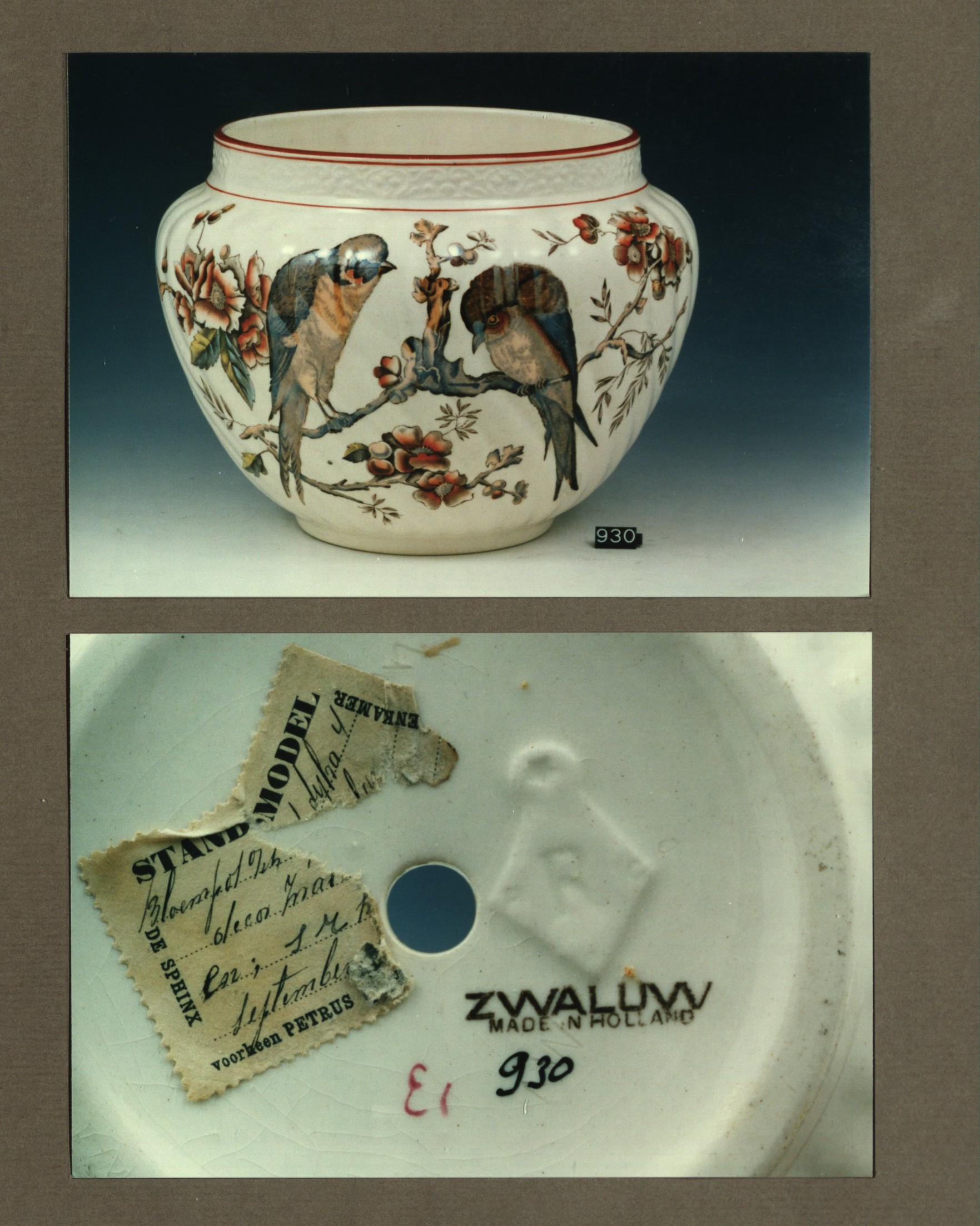 Cachepot, model Dyfra? met decor Zwaluw