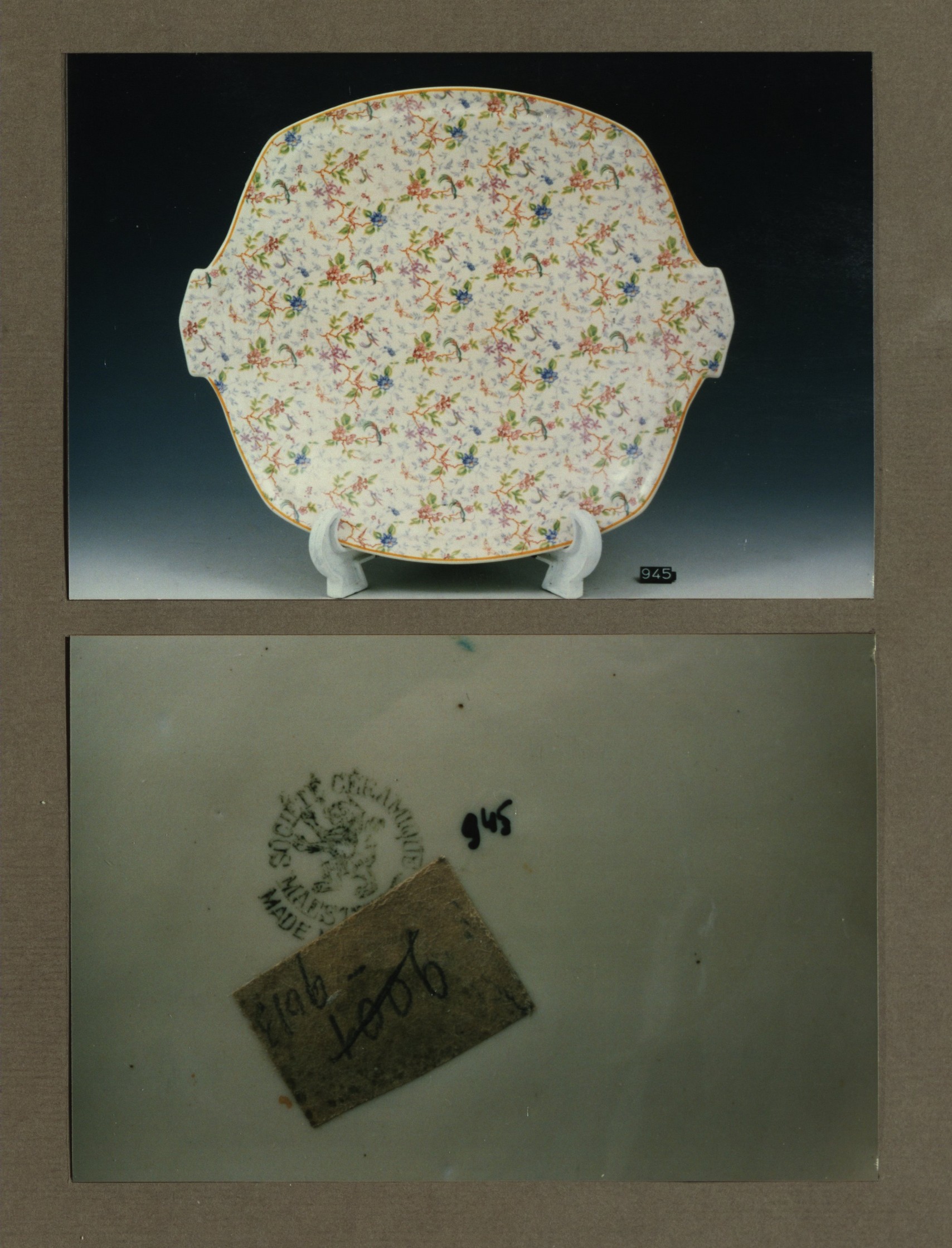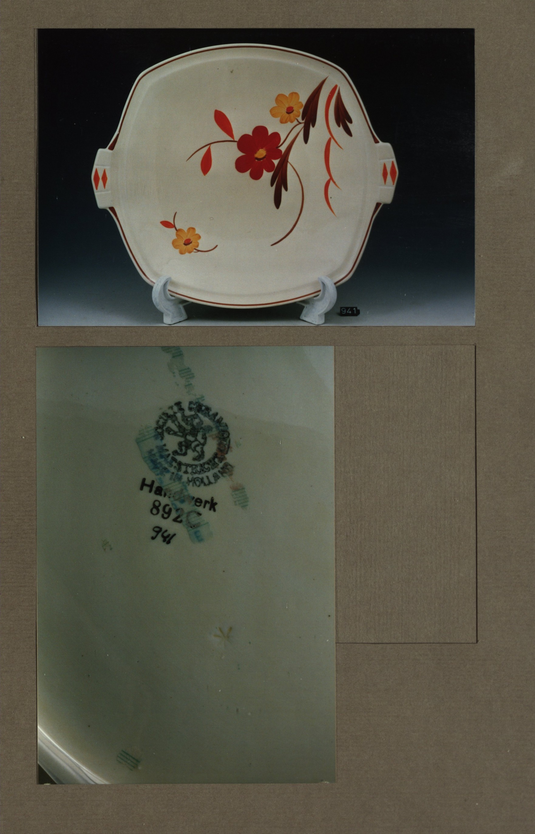 Gebakschaal - stel, model Carre met decor 891C