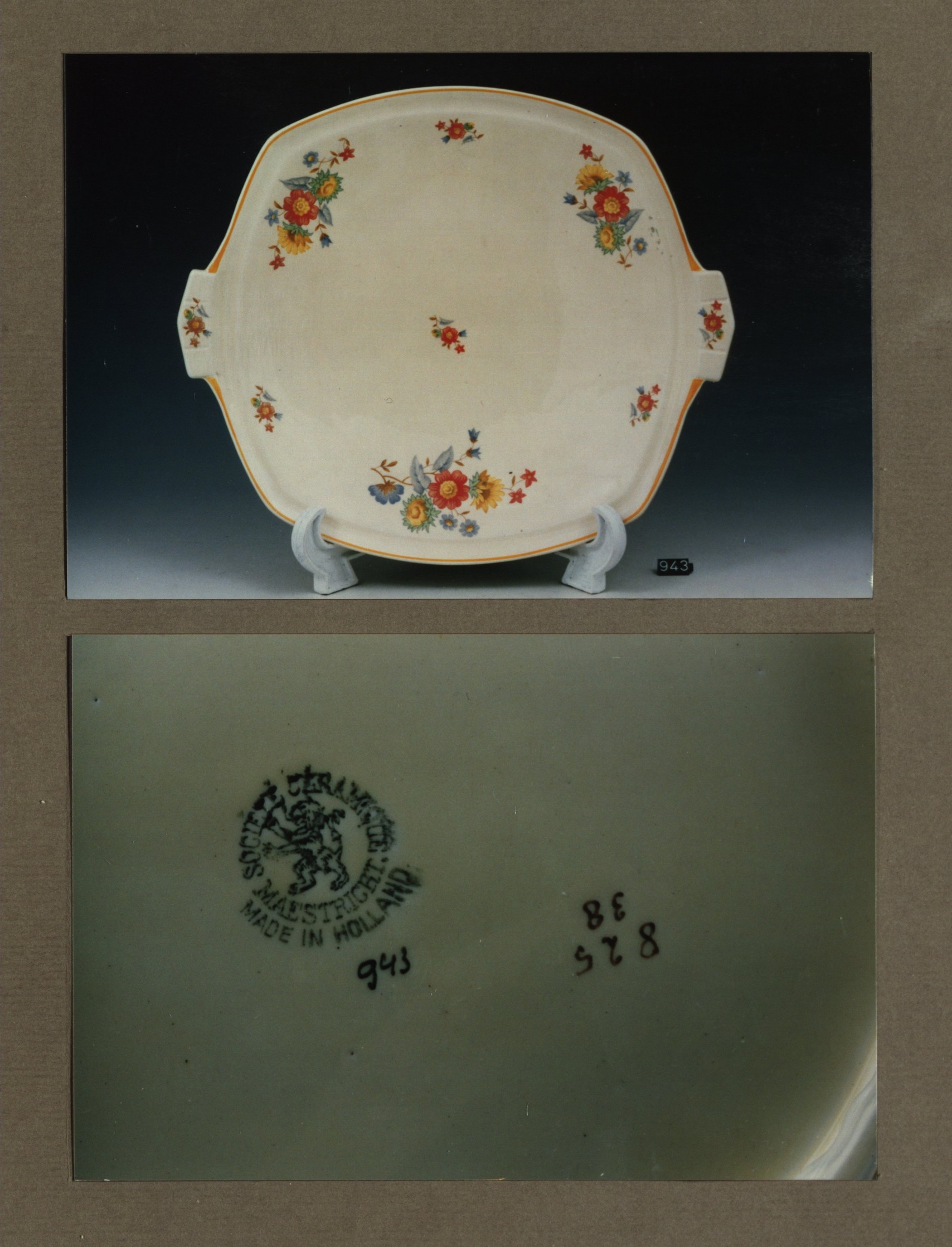 Gebakschaal - stel, model Carre met decor 892C