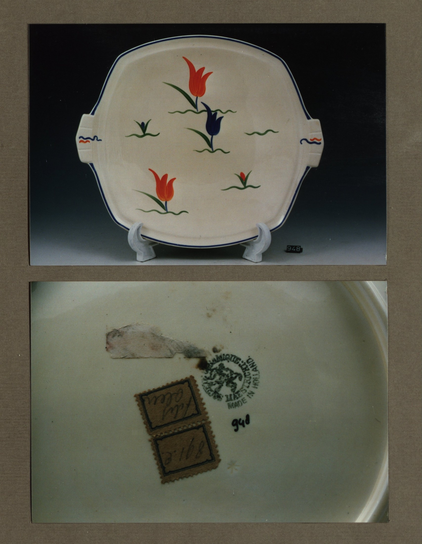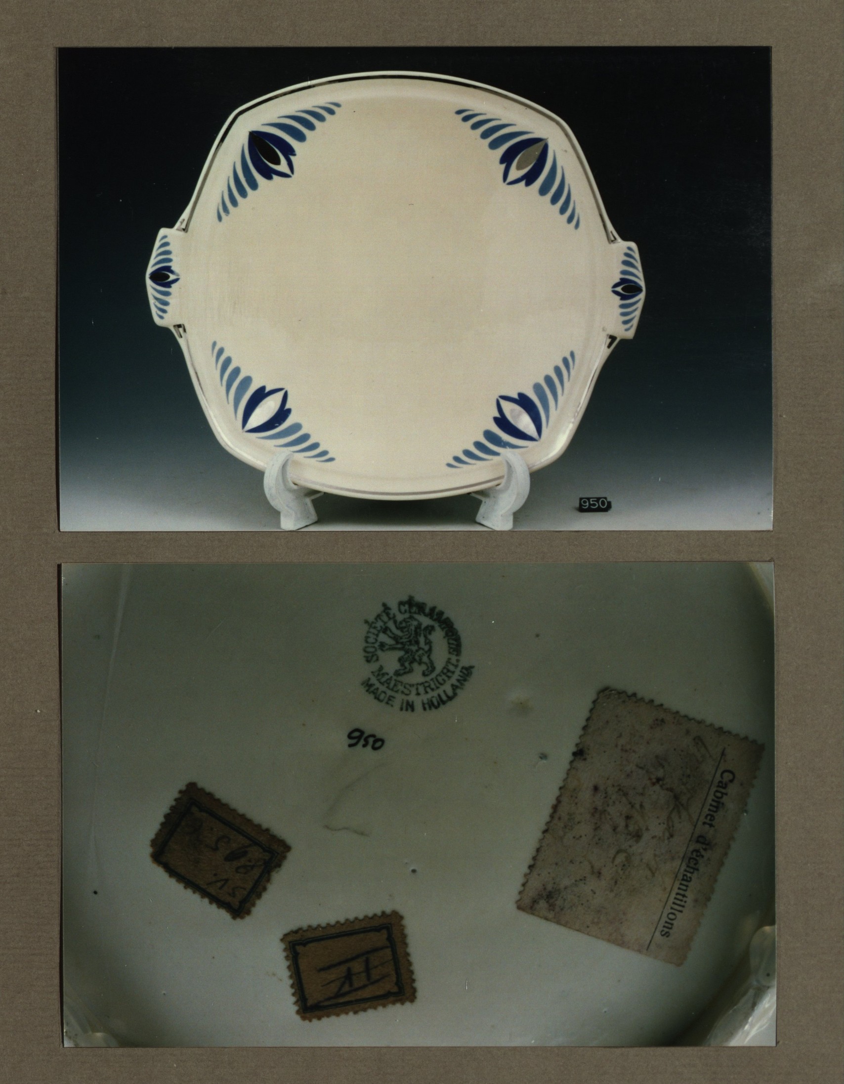 Gebakschaal - stel, model Carre met decor 930C