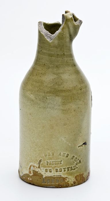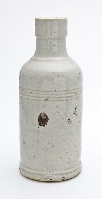 Aardewerk fles in de vorm van een wijnfles, wit gegl...