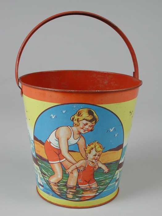 Blikken strandemmer met afbeelding jongen in badkost...