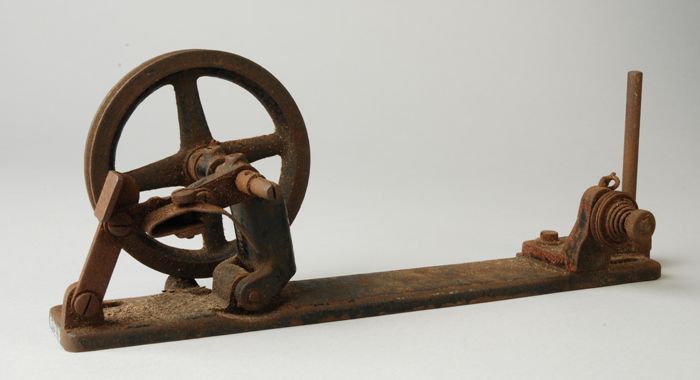 Onderdeel met wiel van trapnaaimachine uit zeilmakerij