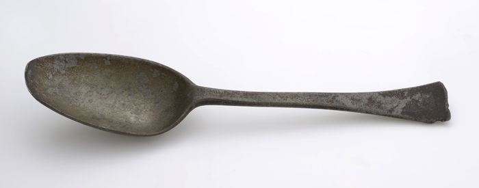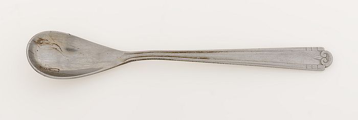 Zilverkleurig theelepeltje met opschrift "Volksbond"