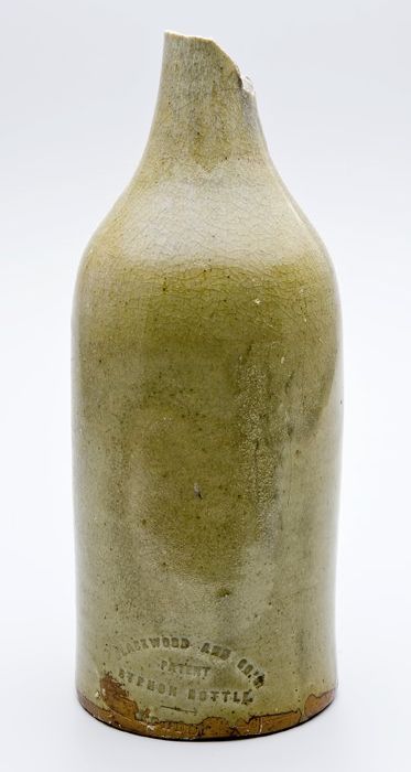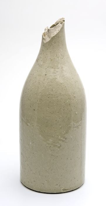 Aardewerk fles in de vorm van een wijnfles, grijs/gr...