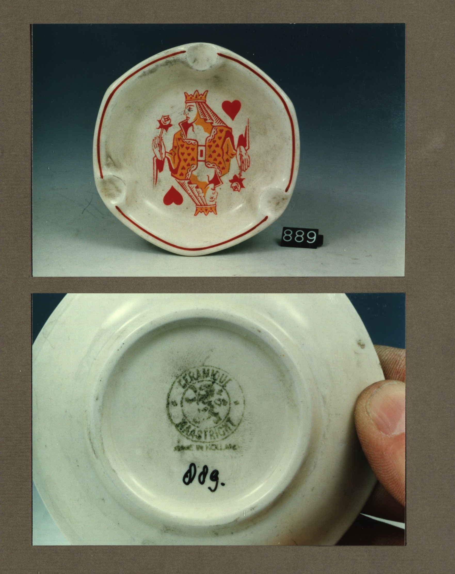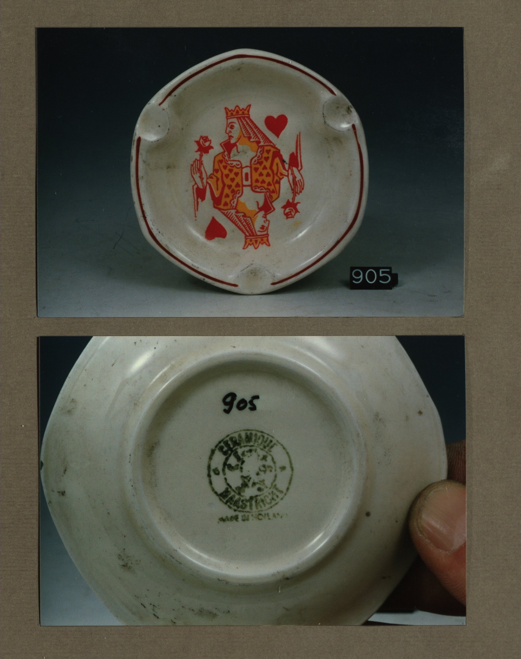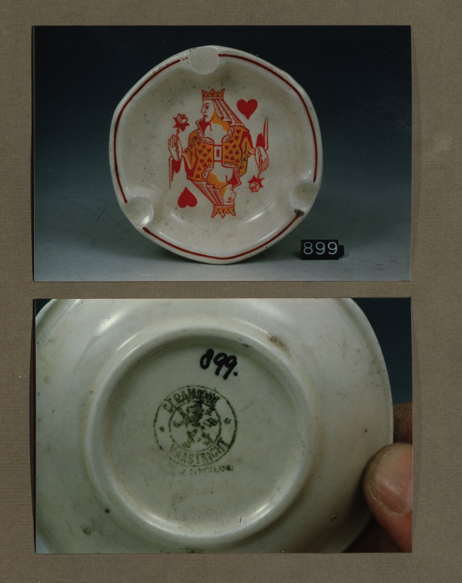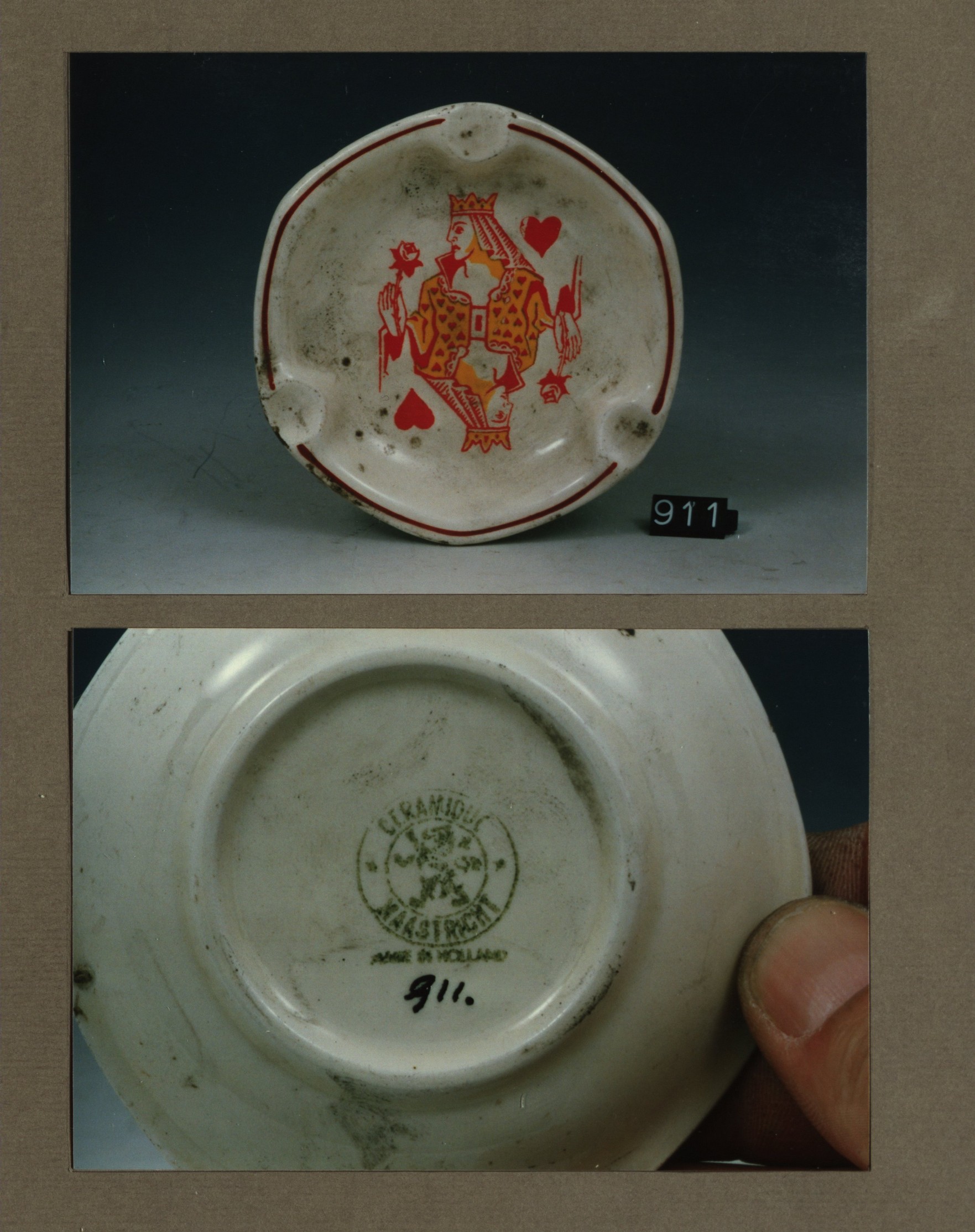 Asbak, model Antwerpen met decor Kaarten