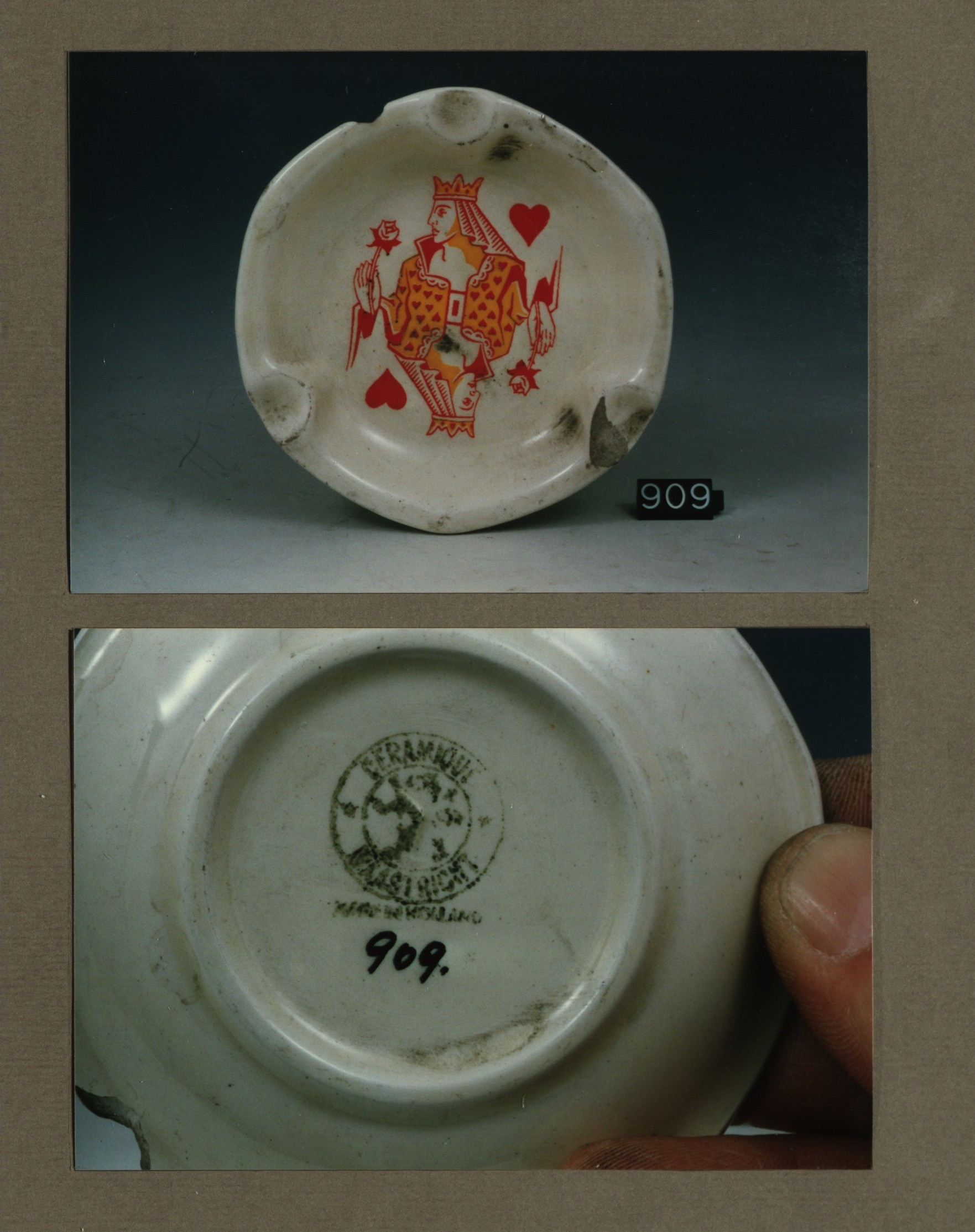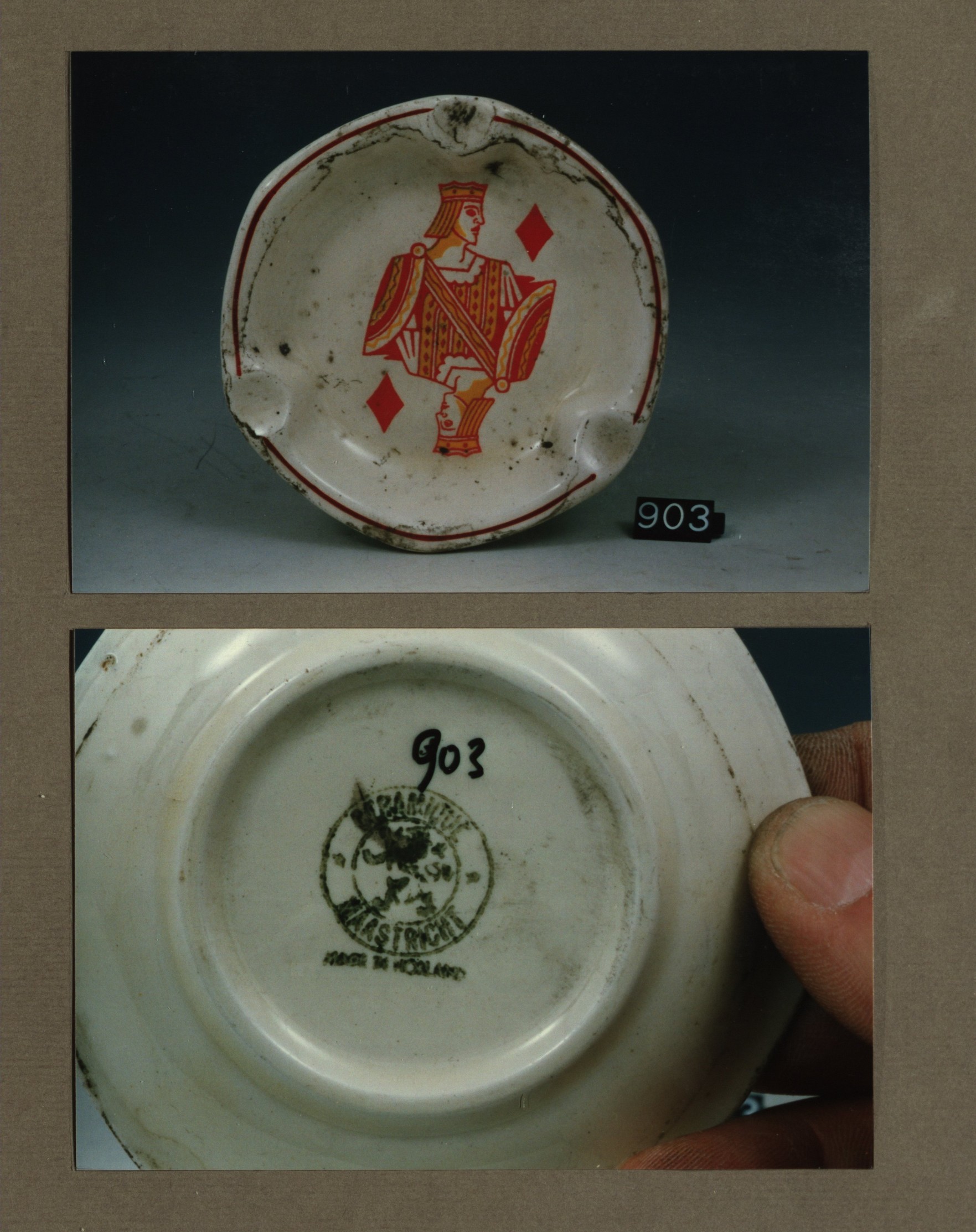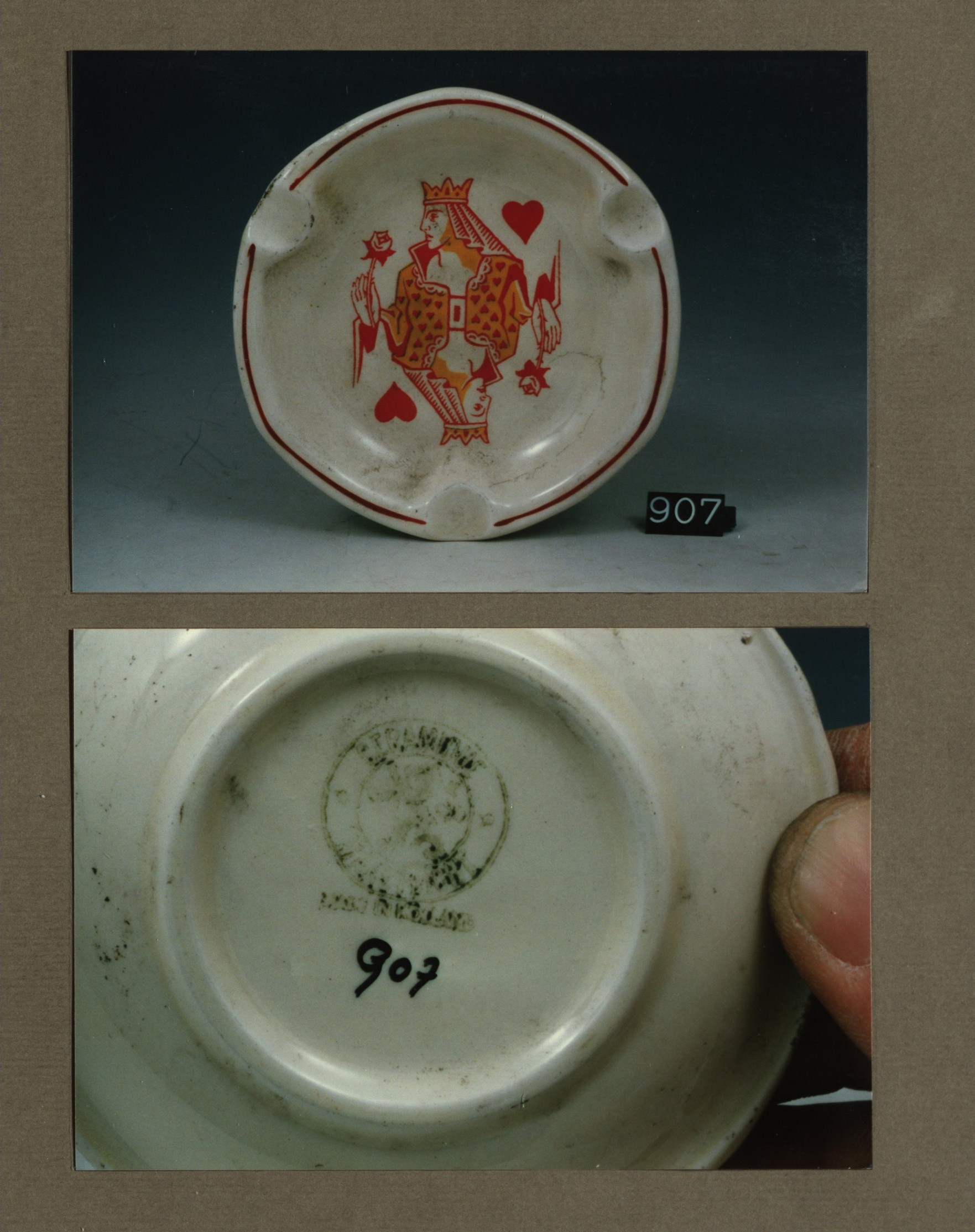 Asbak, model Antwerpen met decor Kaarten