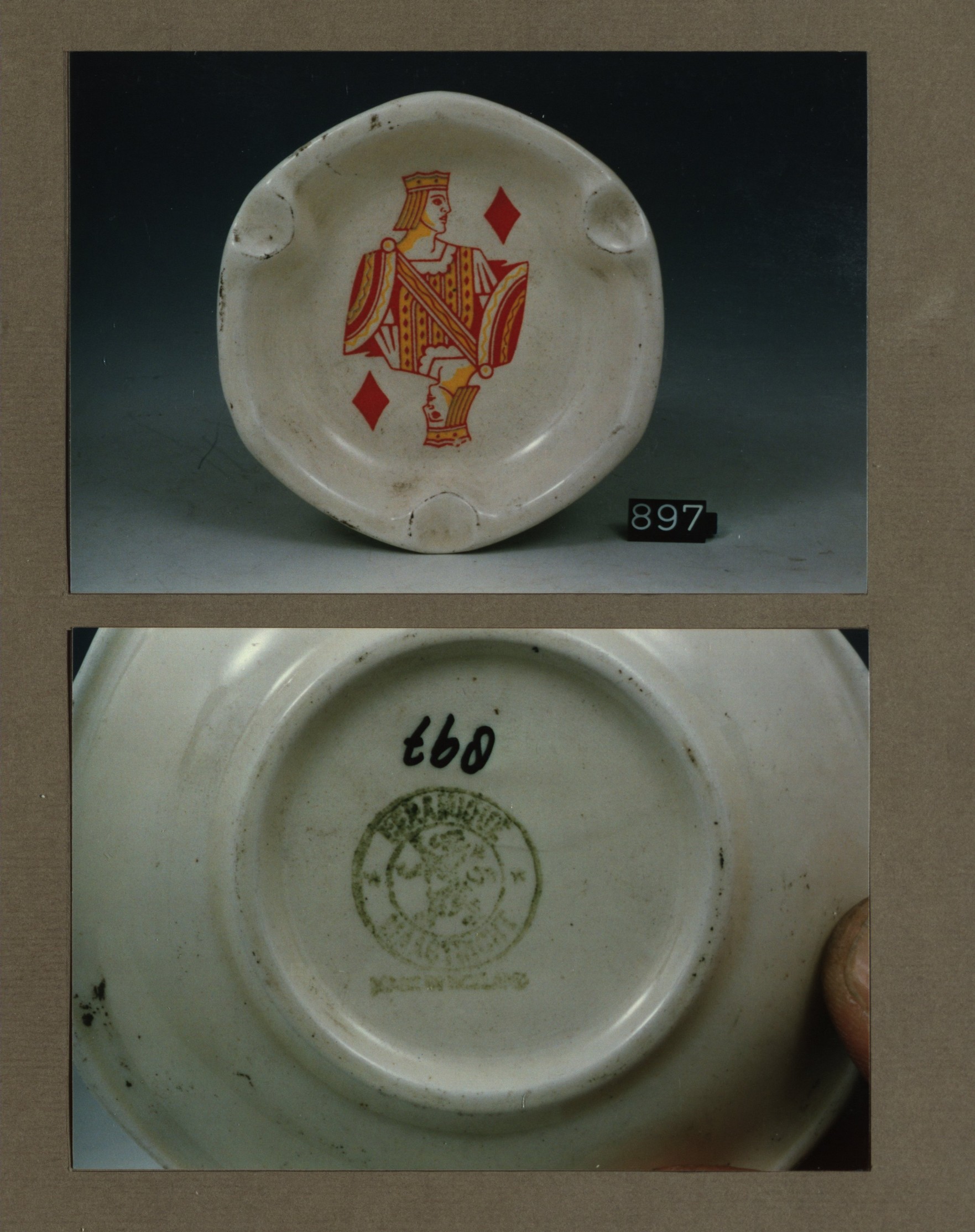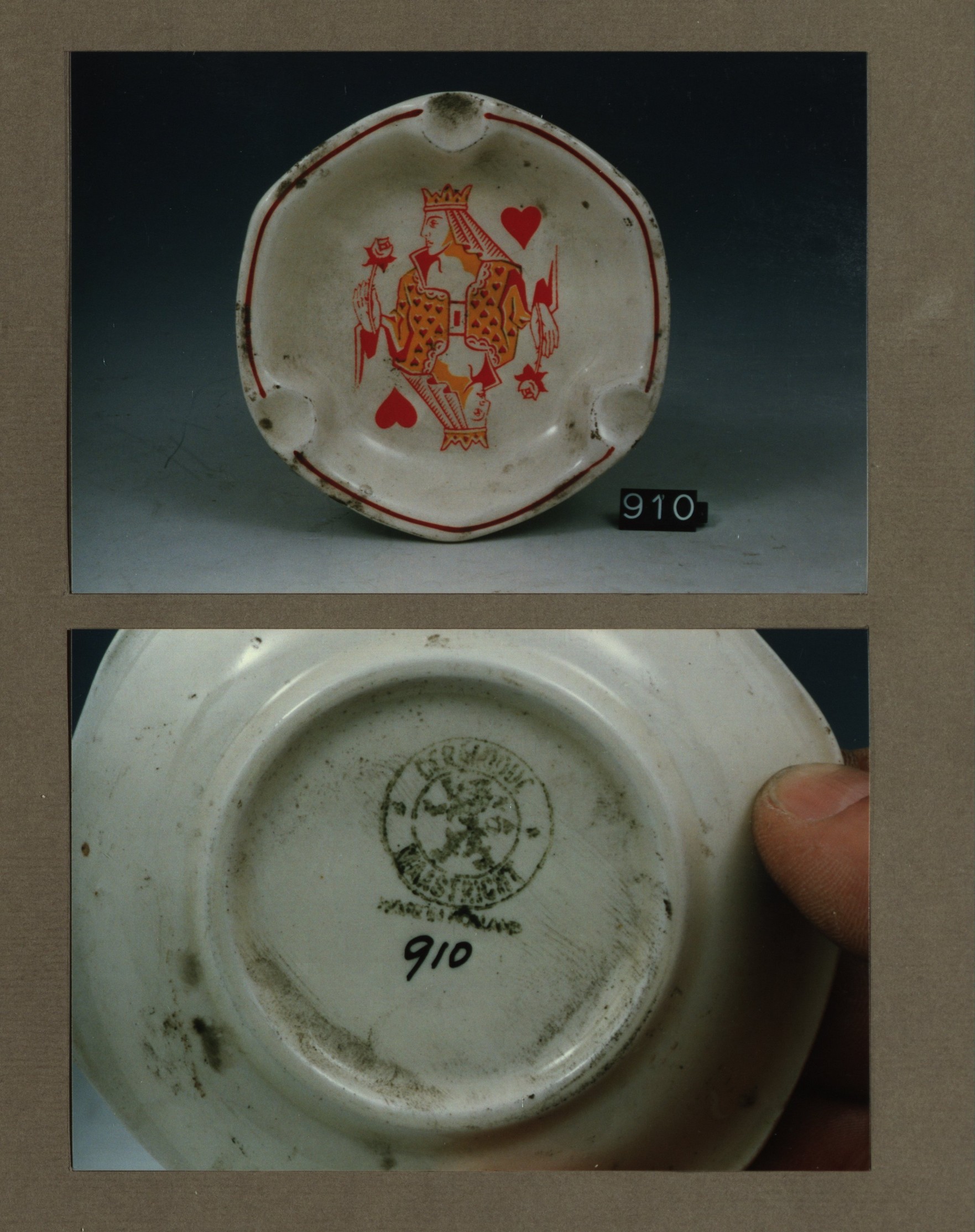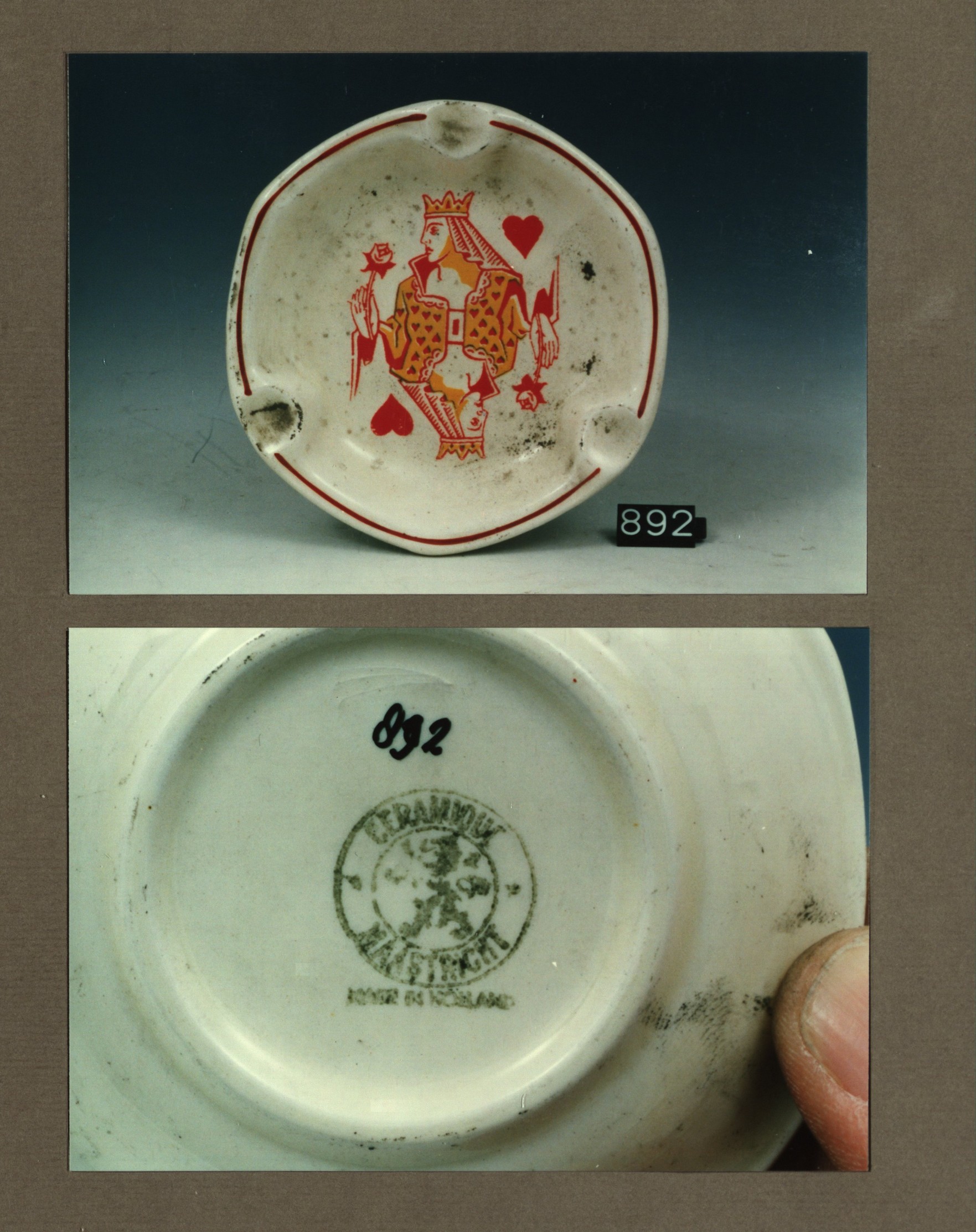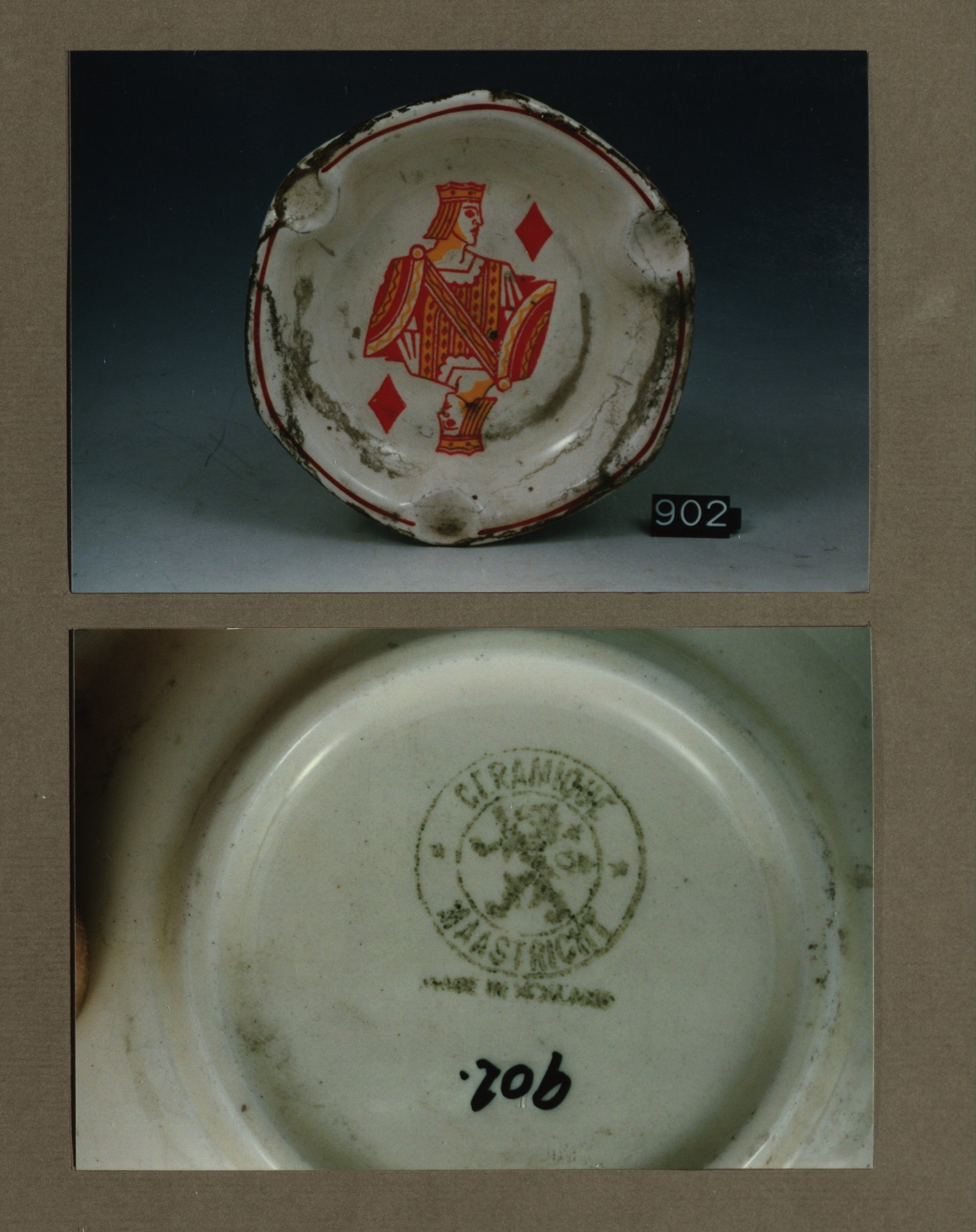 Asbak, model Antwerpen met decor Kaarten