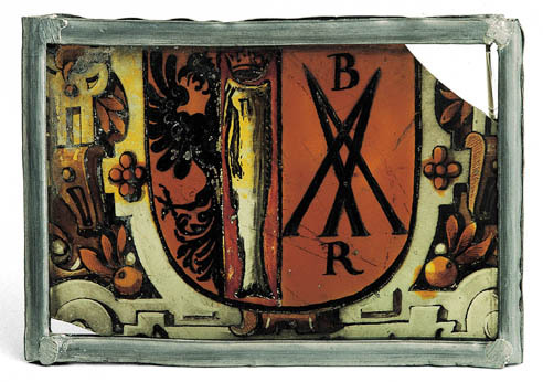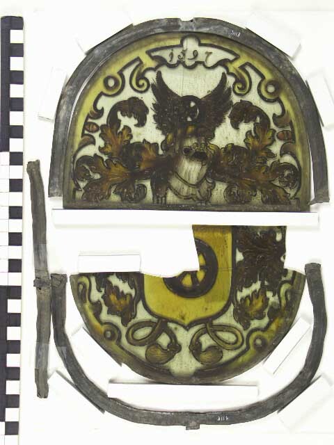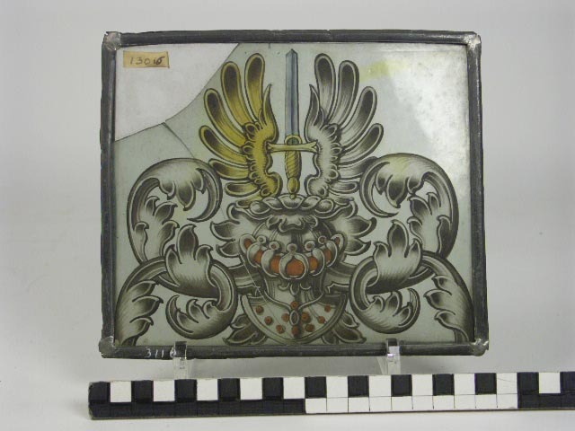 Fragment van gebrandschilderde ruit met het wapen va...