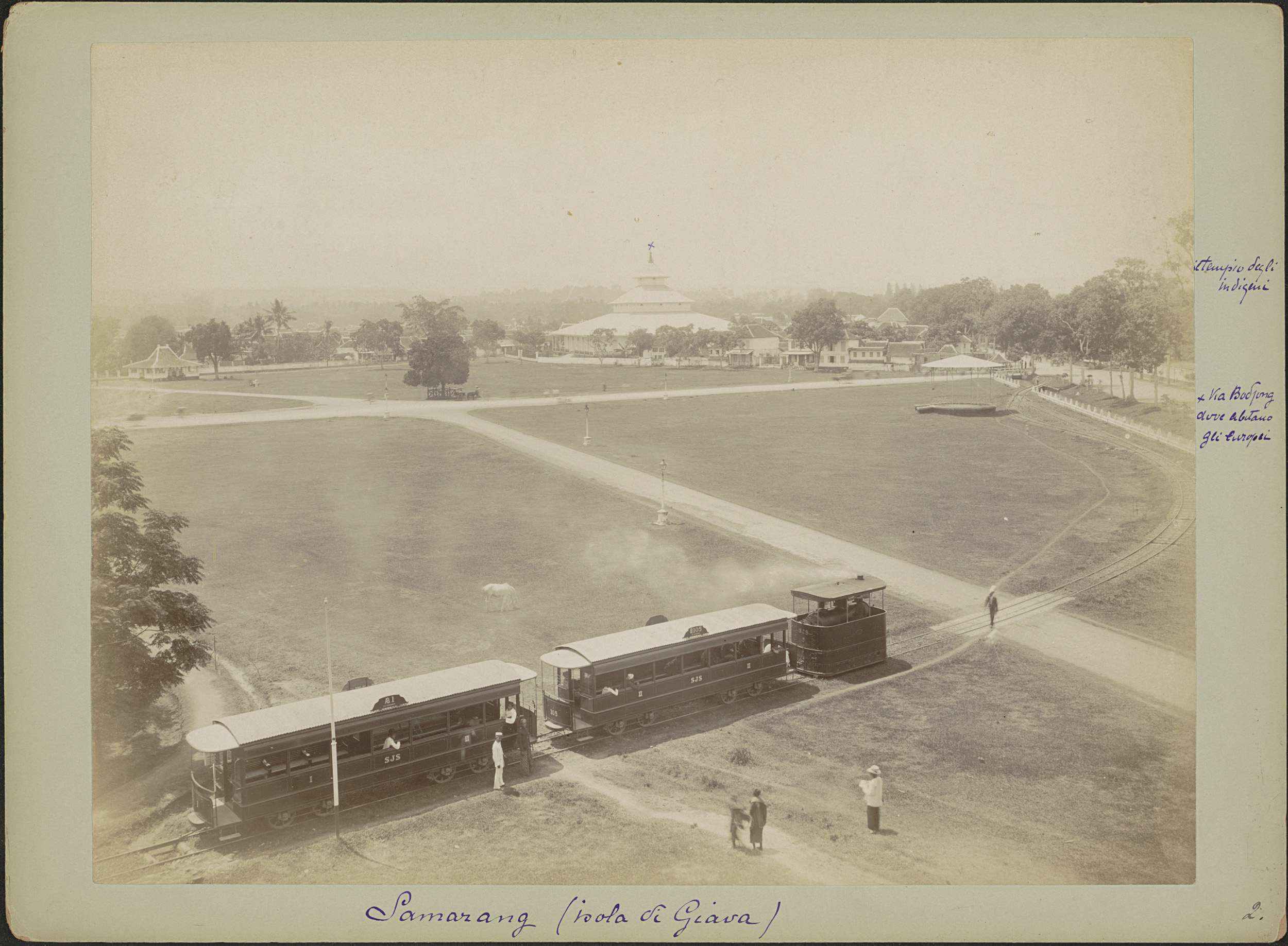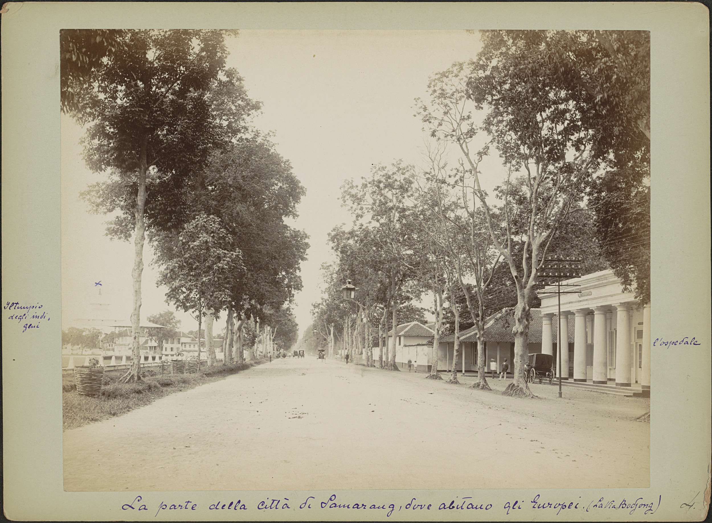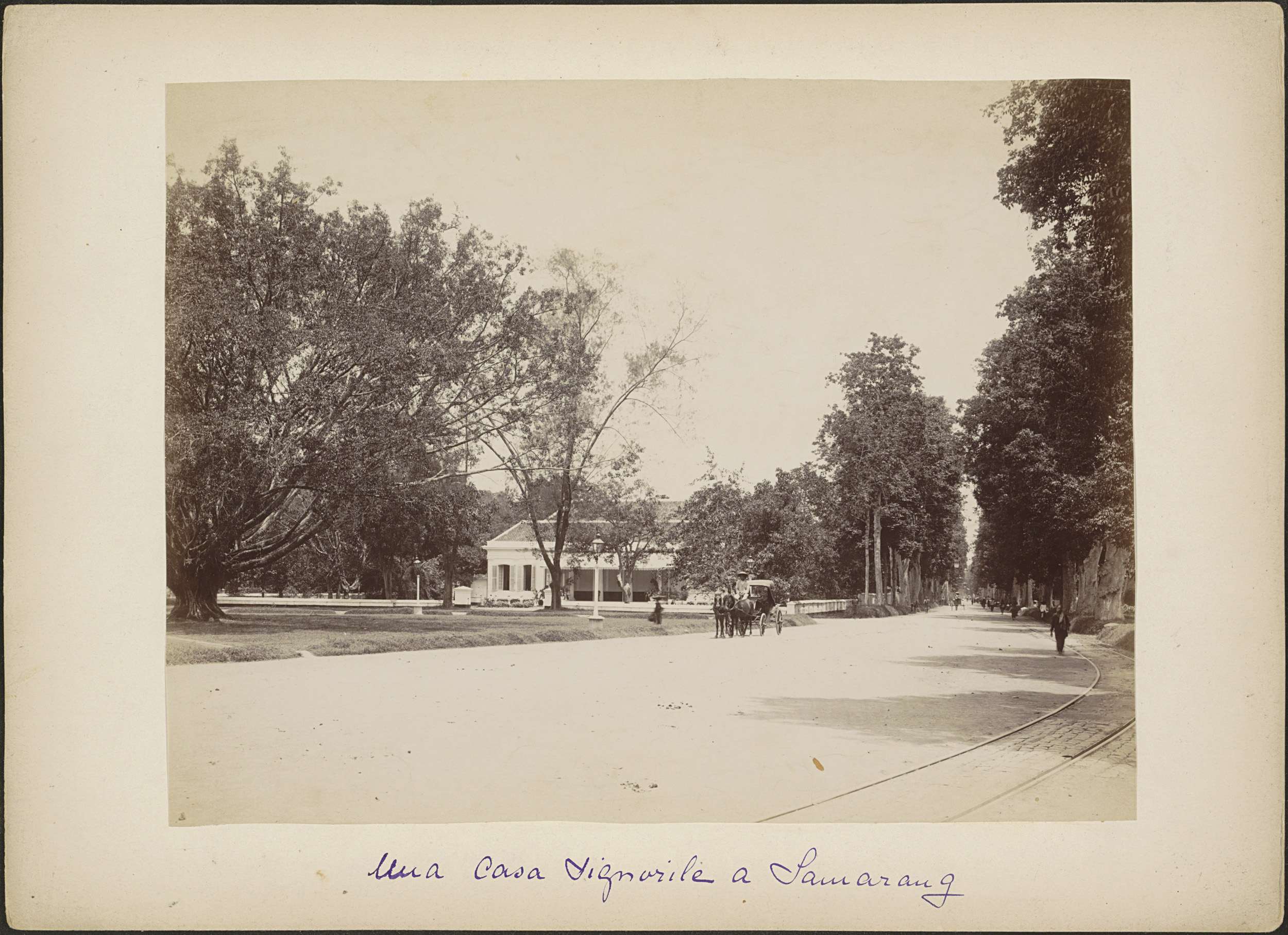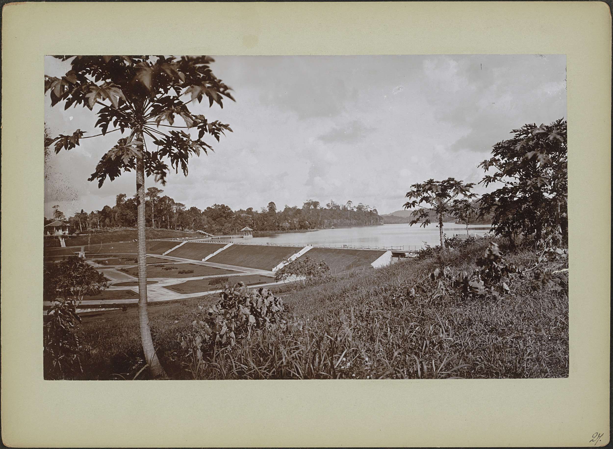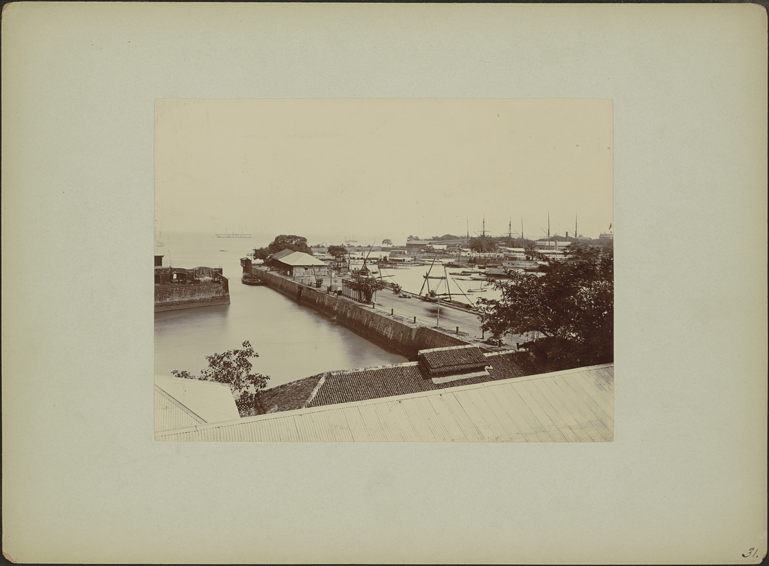 Gezicht op een kade en het Grote Huis (Rumah Besar/G...