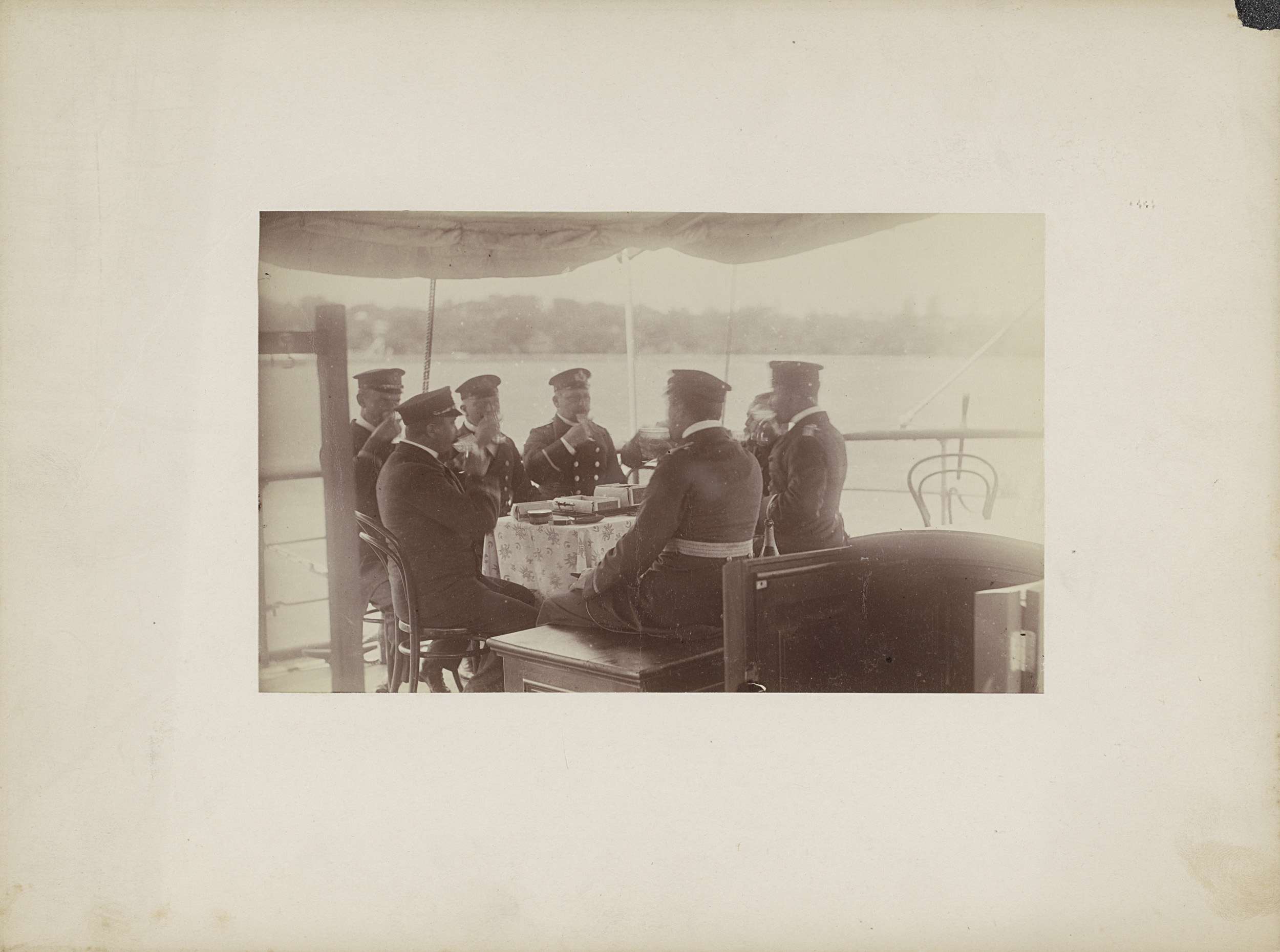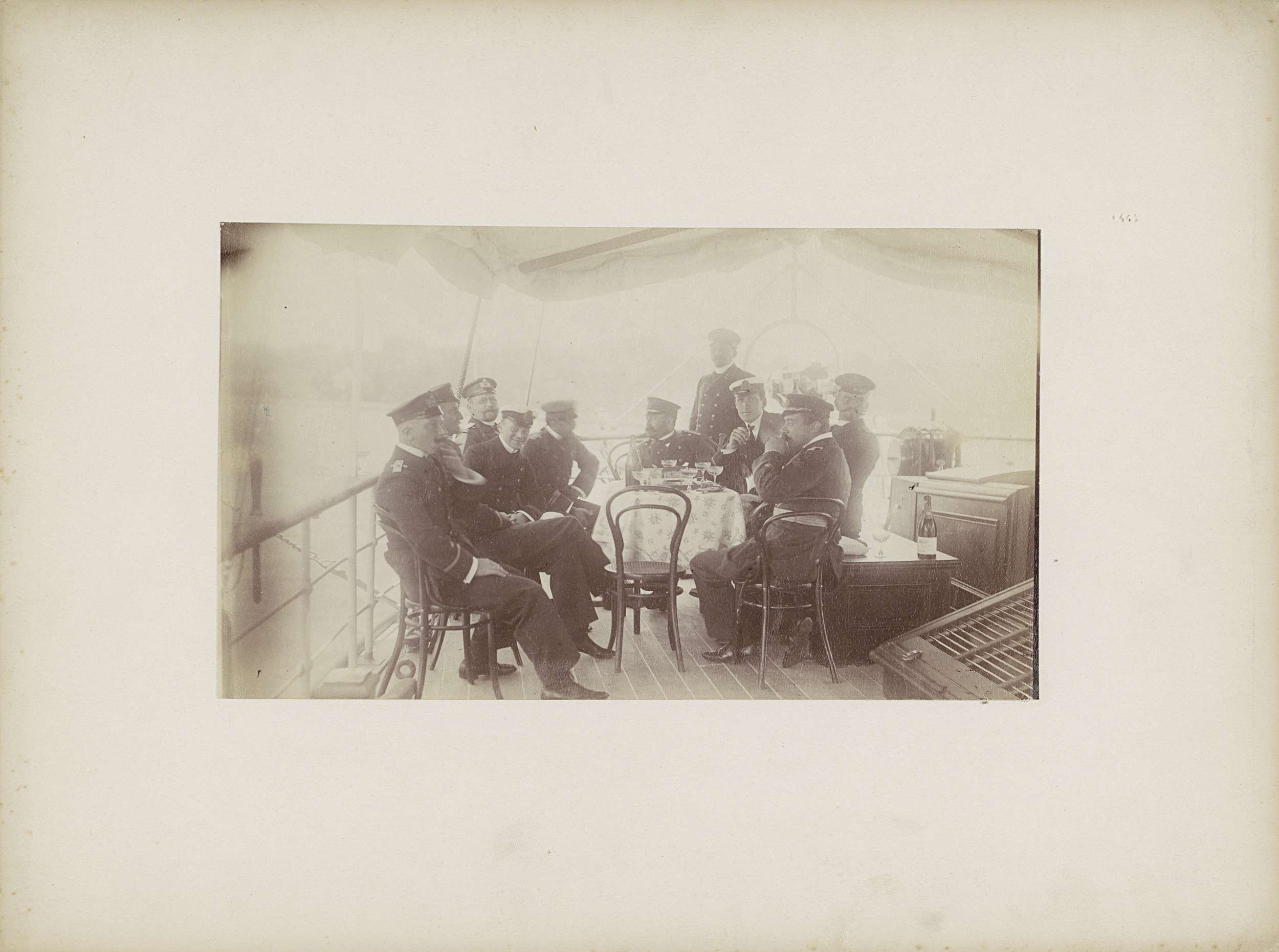 Zeelieden drinken een glaasje aan dek, vermoedelijk ...