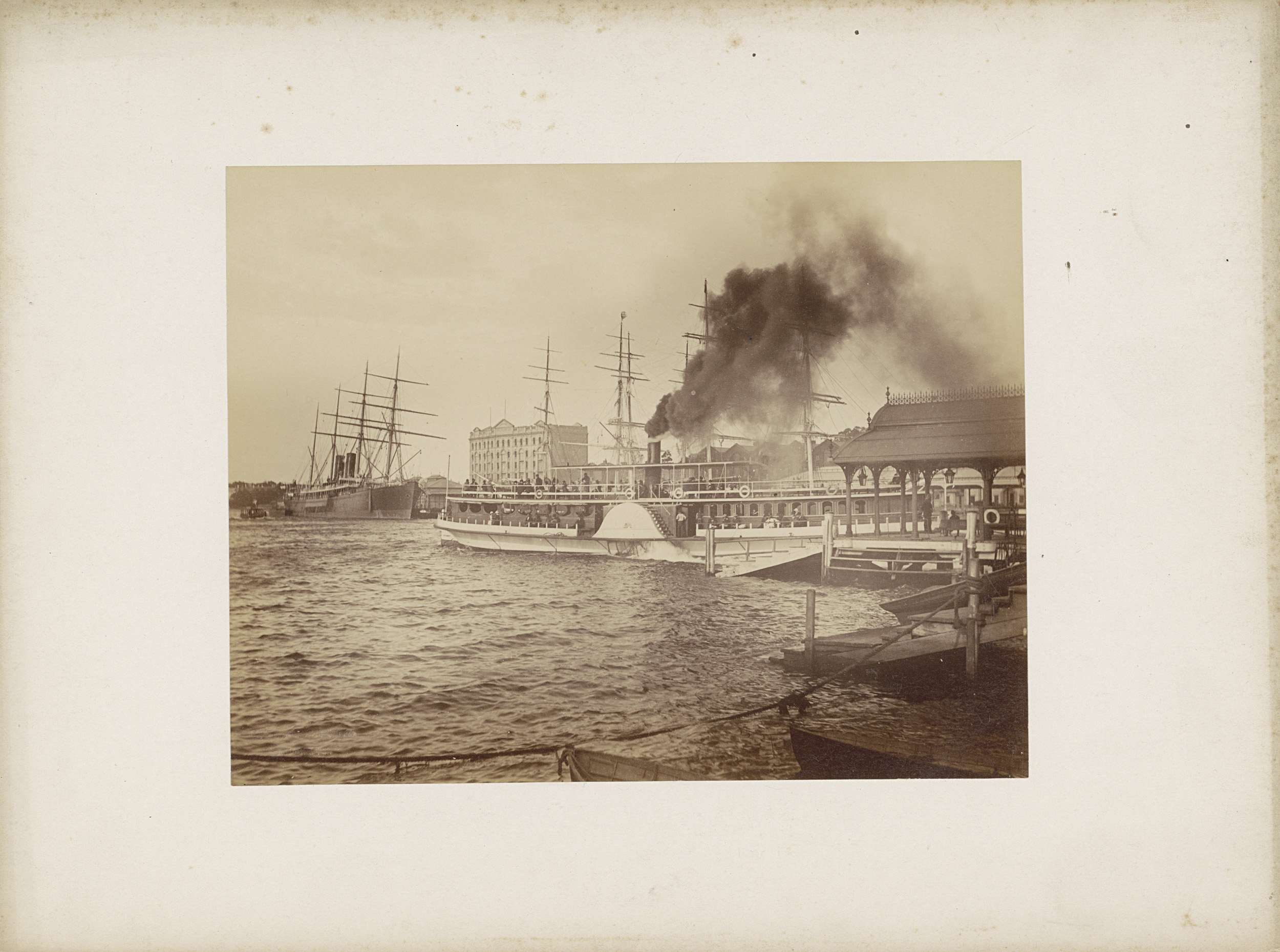 Kade in (vermoedelijk) Sydney met stoomboot 'Darmsta...