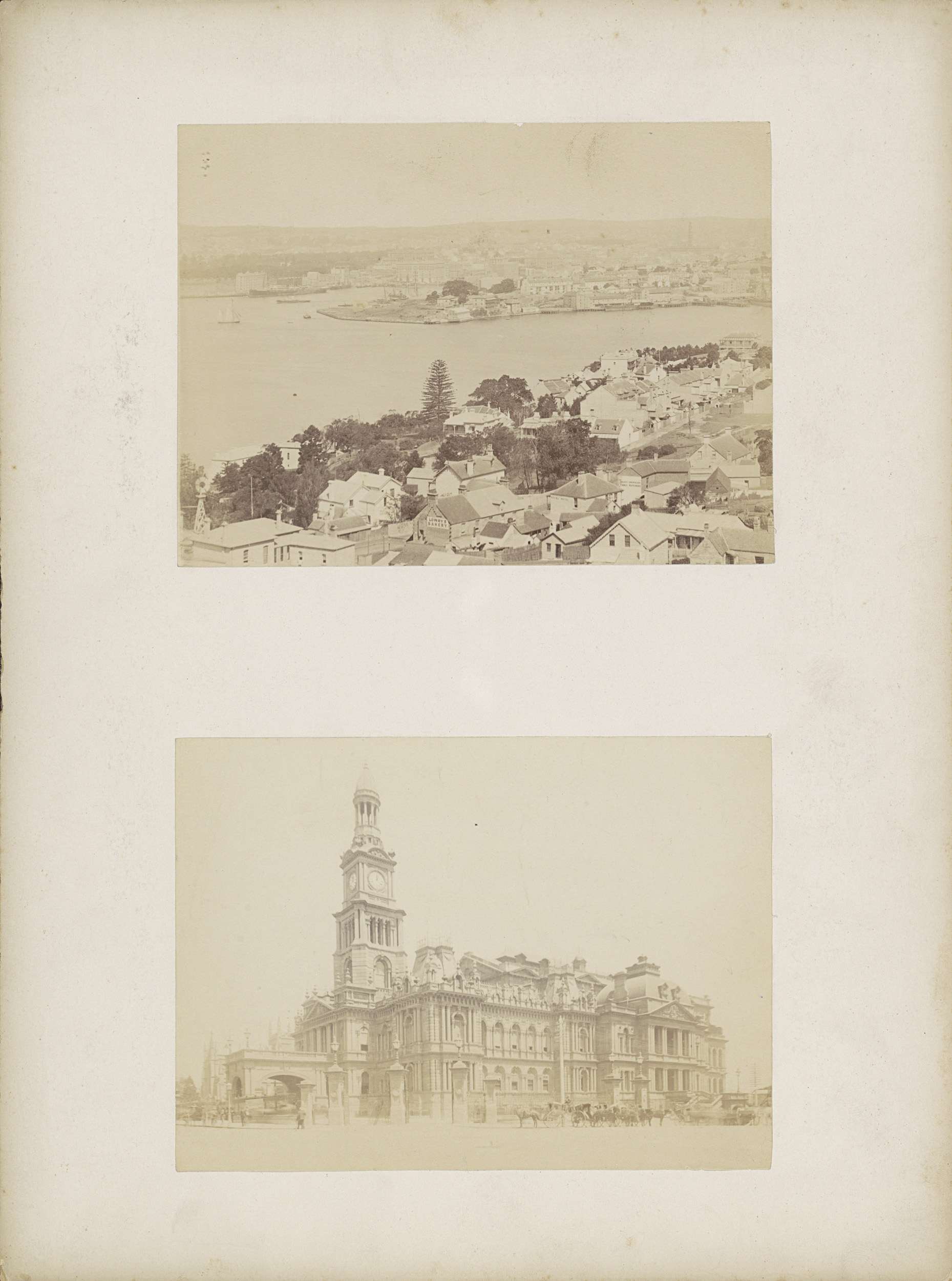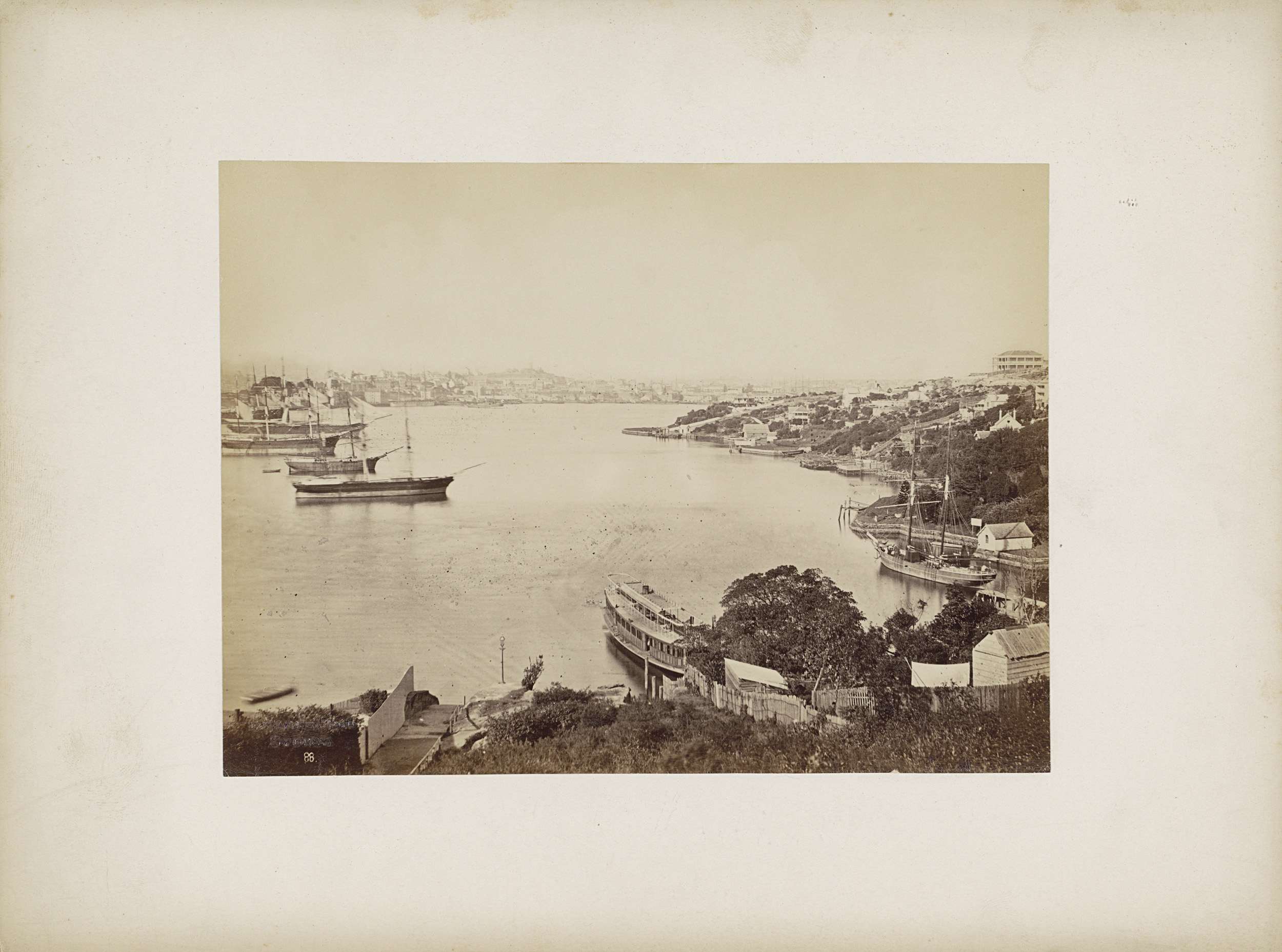 Gezicht op (vermoedelijk) de haven van Sydney met op...