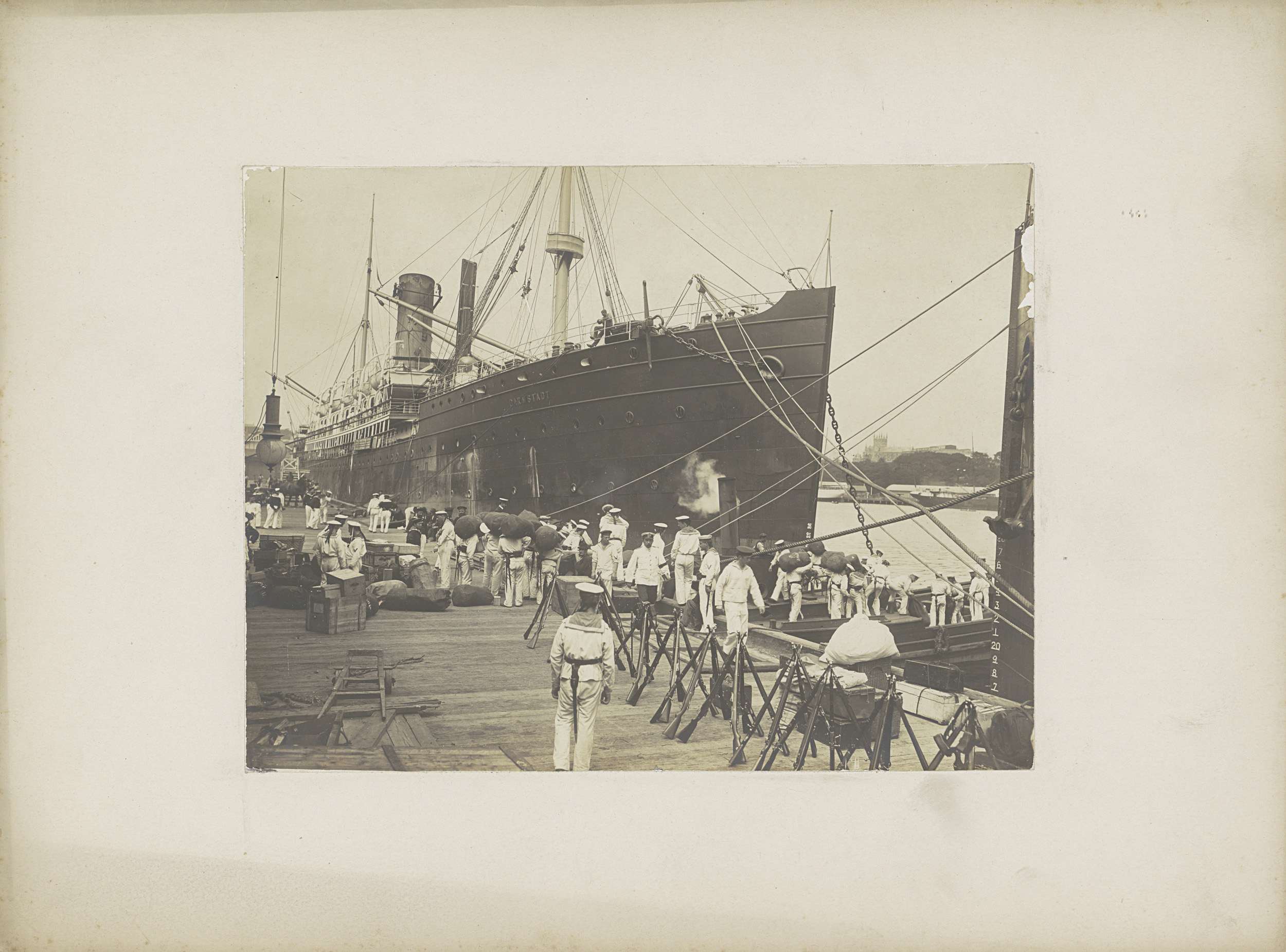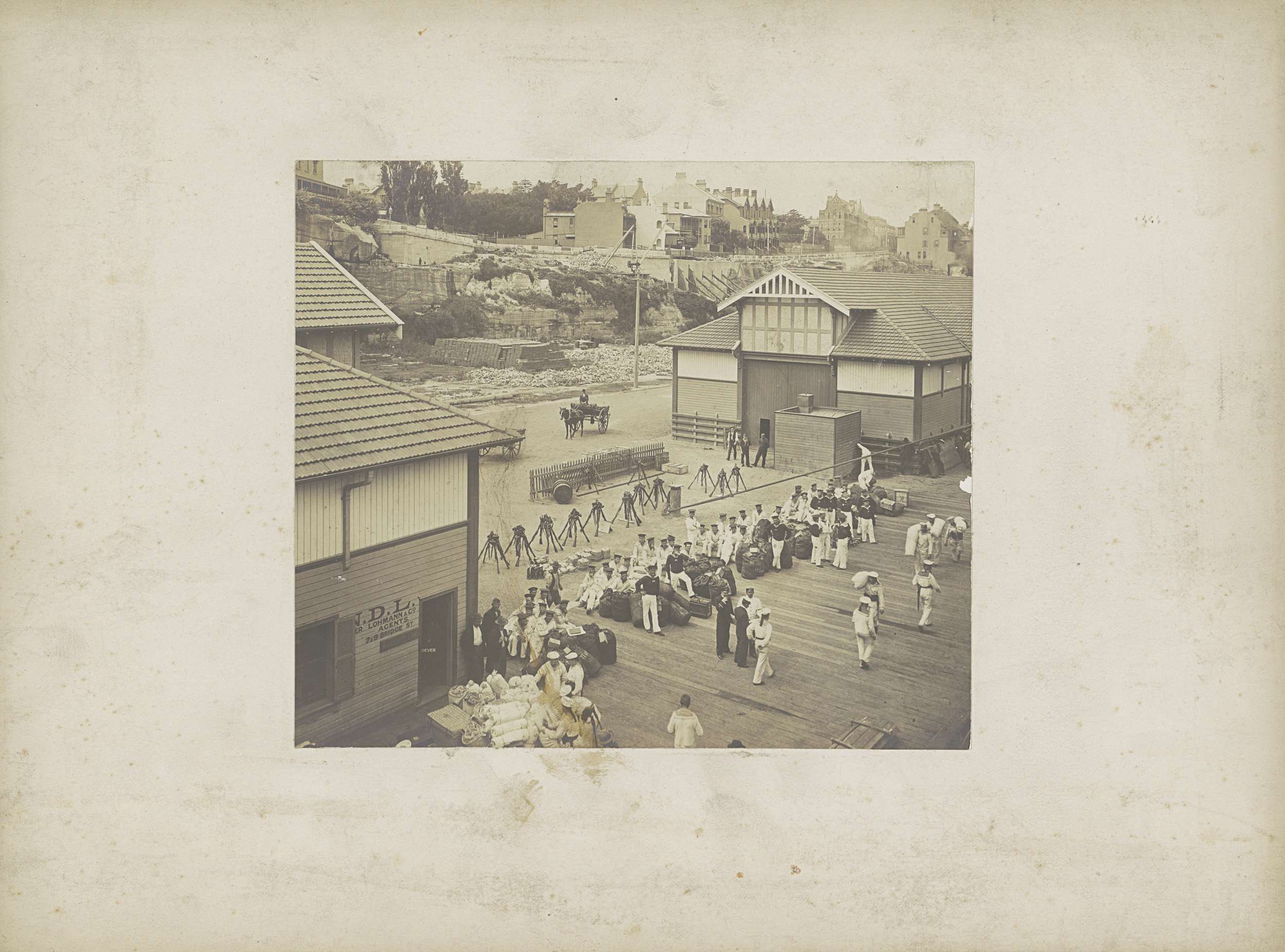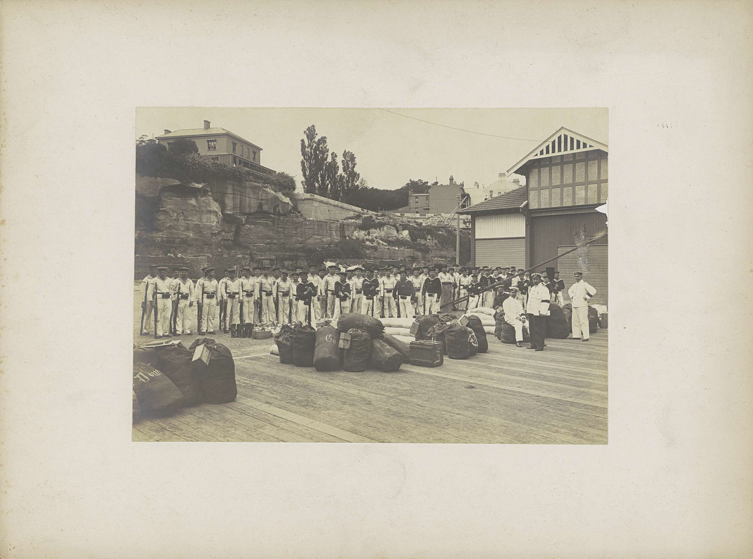 Kade in (vermoedelijk) Sydney met mariniers, bagage,...