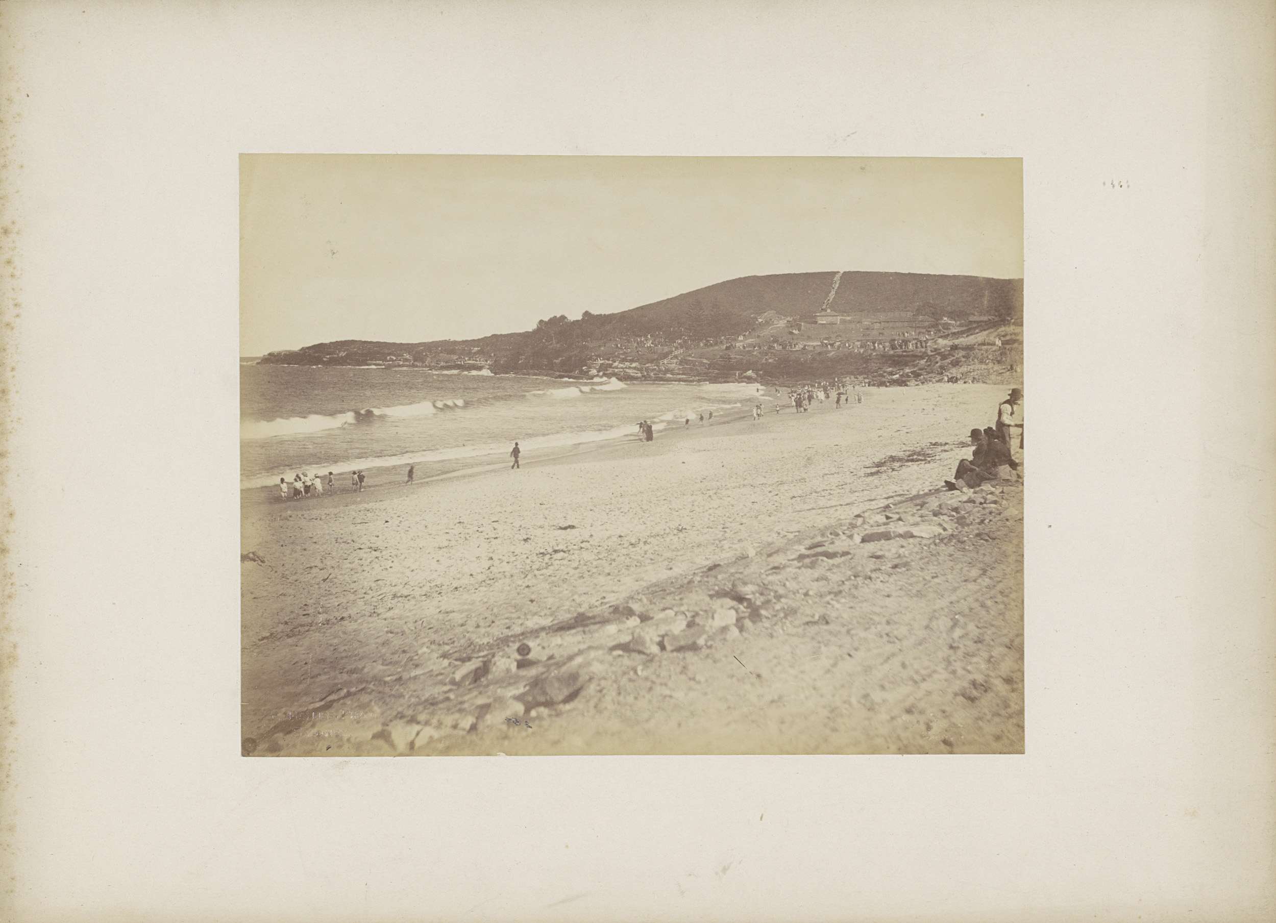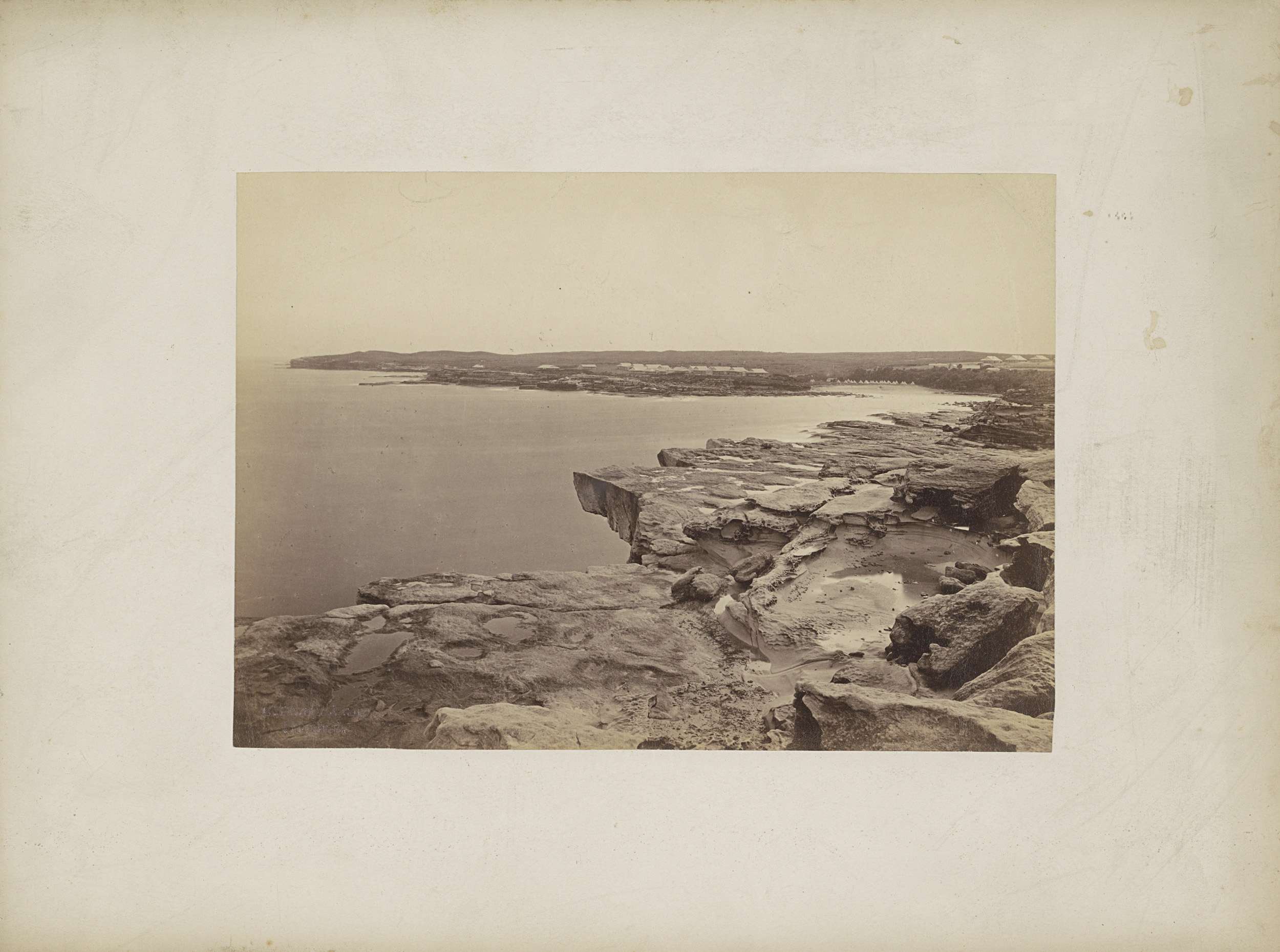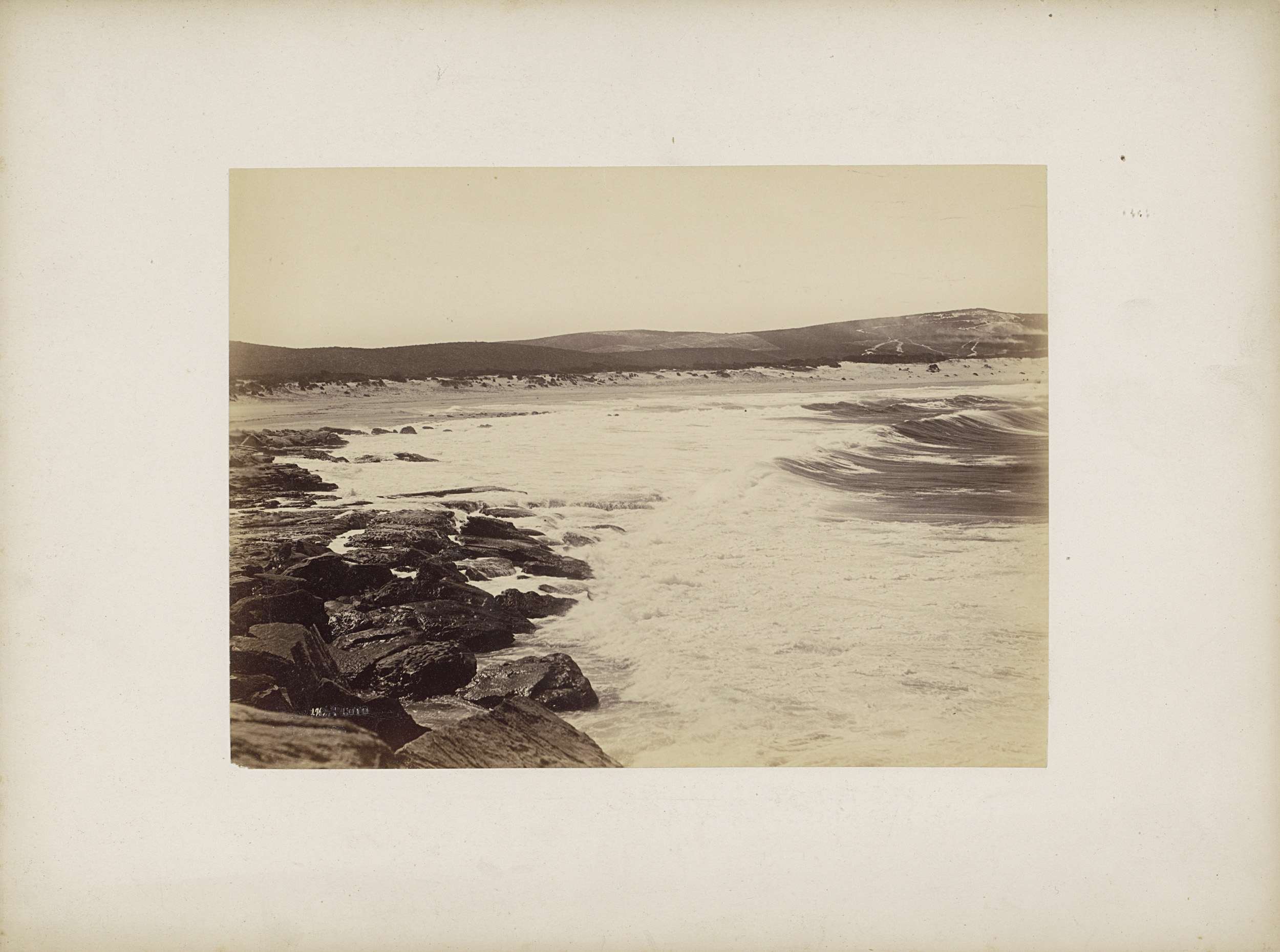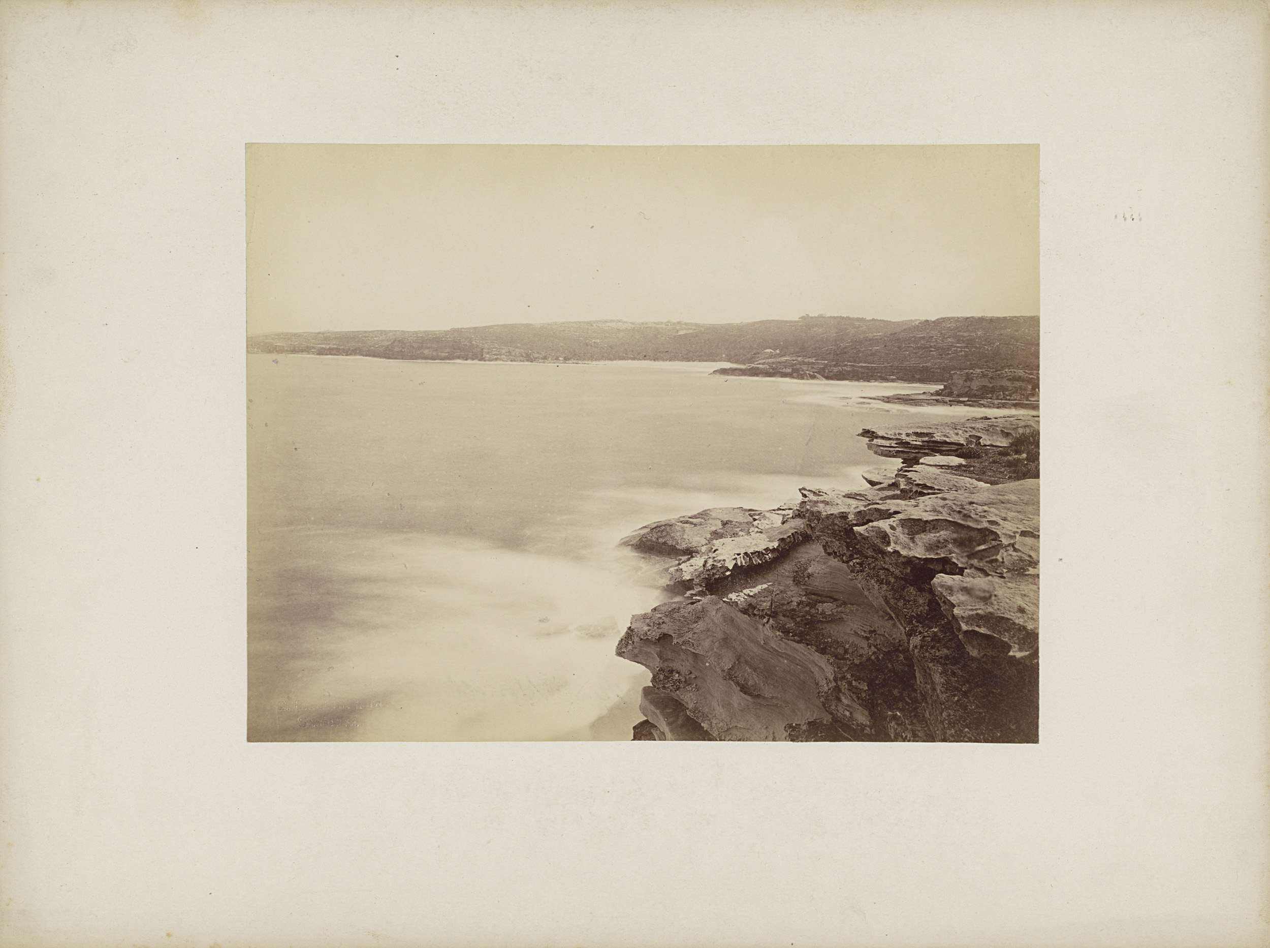 Gezicht op een baai met rotsen, vermoedelijk in de b...