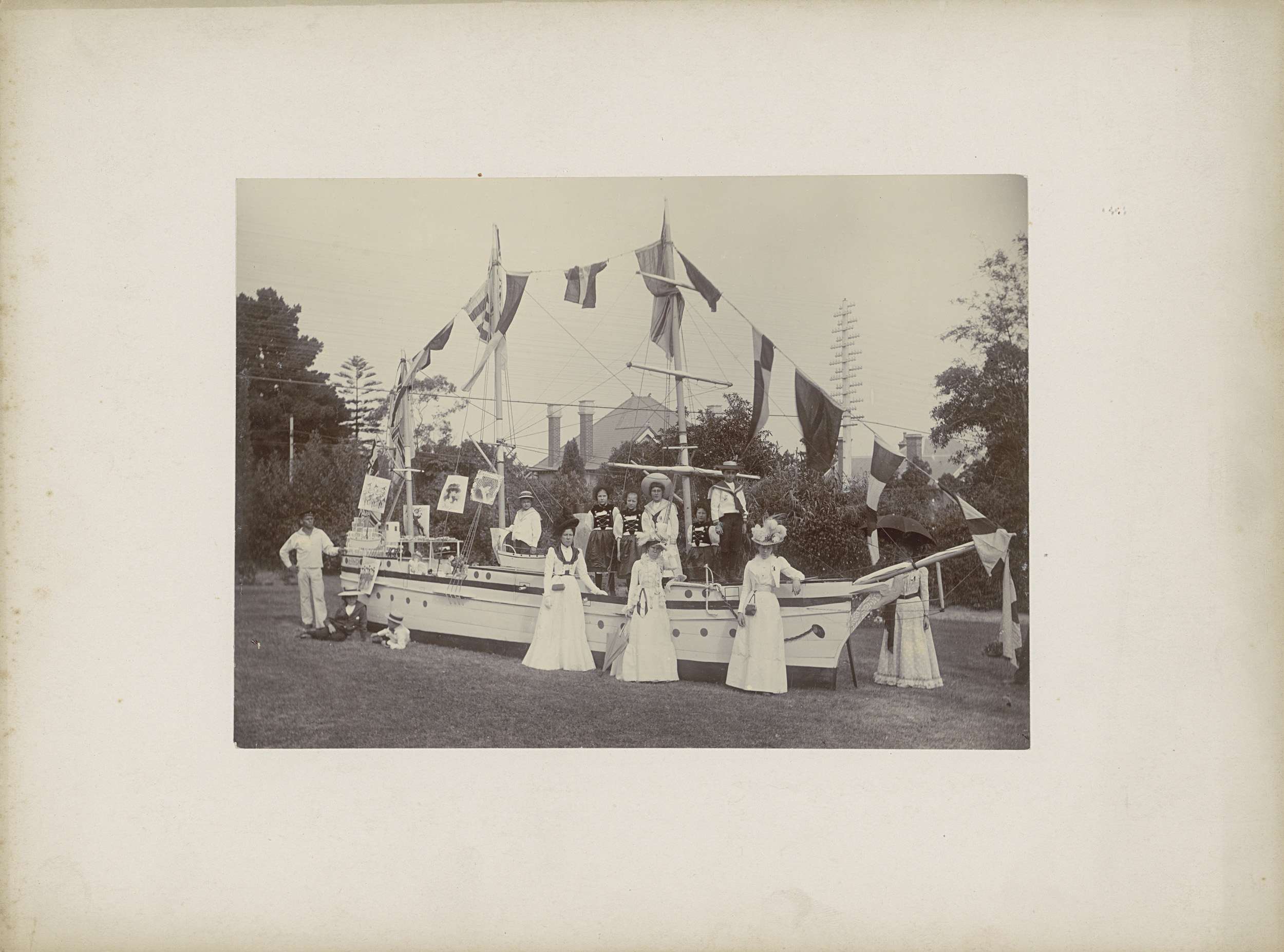 Groepsportret van zeelieden met vrouwen, vermoedelij...