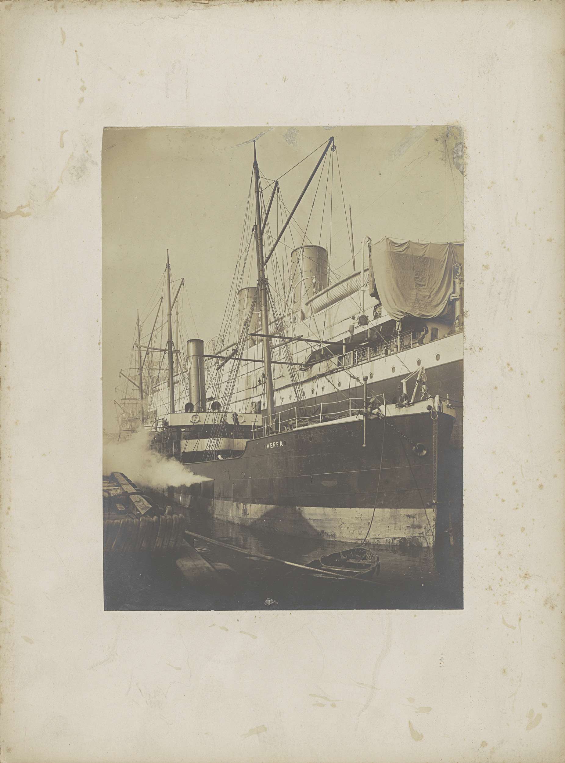 Kolenschip 'Werfa' naast een oceaanstomer, vermoedel...
