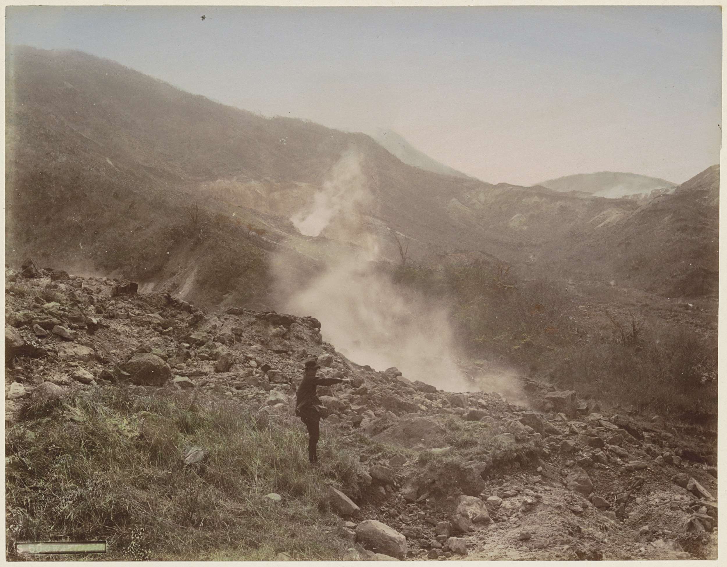 Raderboor met dampende schoorsteen, vermoedelijk in ...