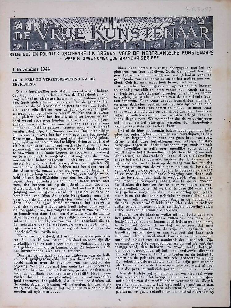 De Vrije Kunstenaar, 1 November 1944